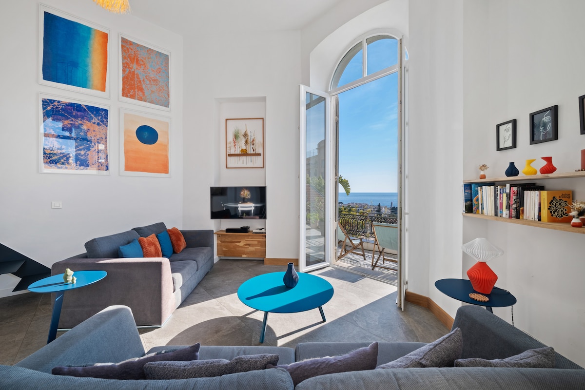 Beautiful renovated 60 m² apartment in a quiet, secure residence, 5 min drive from Villefranche-sur-Mer village and beach, 5 min walk from Col de Villefranche, between Nice and Monaco. 1 bedroom, bright living room with sofa bed, open kitchen, bathroom with walk-in shower and separate WC. Balcony with sea view, private parking, for 4 guests. Wi-Fi, AC, washer, dryer, dishwasher and self check-in available.