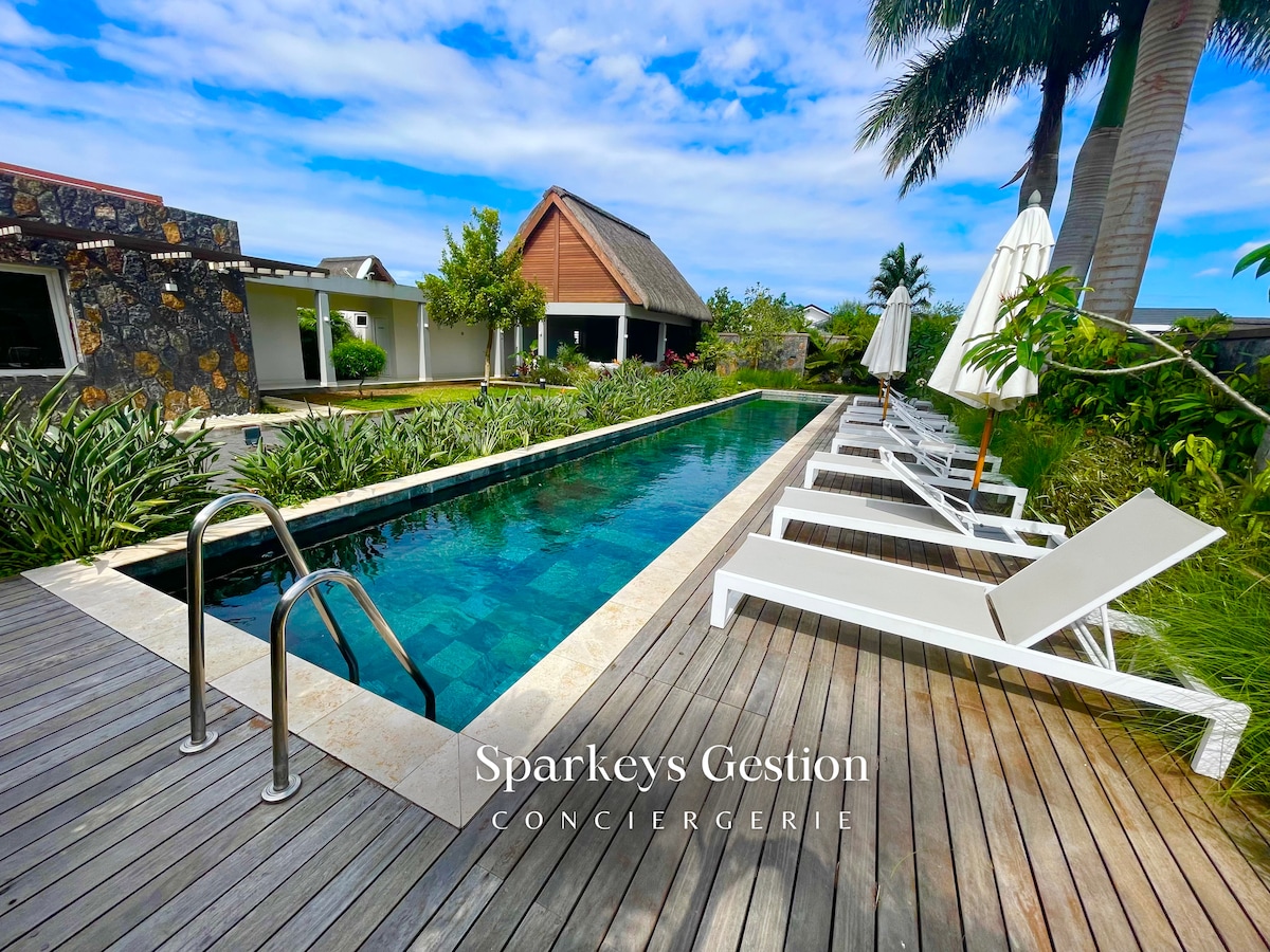 Discover our villa with timeless elegance, perfect for couples and tranquility enthusiasts. Located just a few minutes by car from Trou-aux-Biches beach, ranked among the most beautiful in Mauritius in 2023. For golf enthusiasts, the prestigious Mont Choisy golf course is a 20-minute drive away, providing a unique experience. Our tropical garden, surrounding the pool, creates an idyllic setting for relaxation. Immerse yourself in an experience where calm and nature harmonize seamlessly.