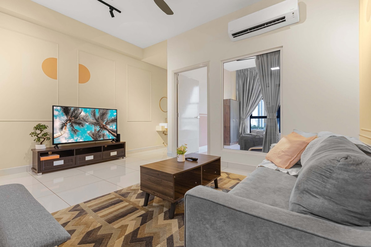 Posh | A Premium 1-Bedroom with a Touch of Warmth Discover an intimate retreat in this bright, warm one-bedroom, perfect for solo travelers or couples. Meticulously equipped with premium amenities, it’s ideal for up to 2 guests on long-term stays (or 3 for short visits). Located in safe, upscale Mont'Kiara and directly connected to Sunway 163 Mall, enjoy the ultimate convenience of having shops, dining, and groceries at your doorstep.