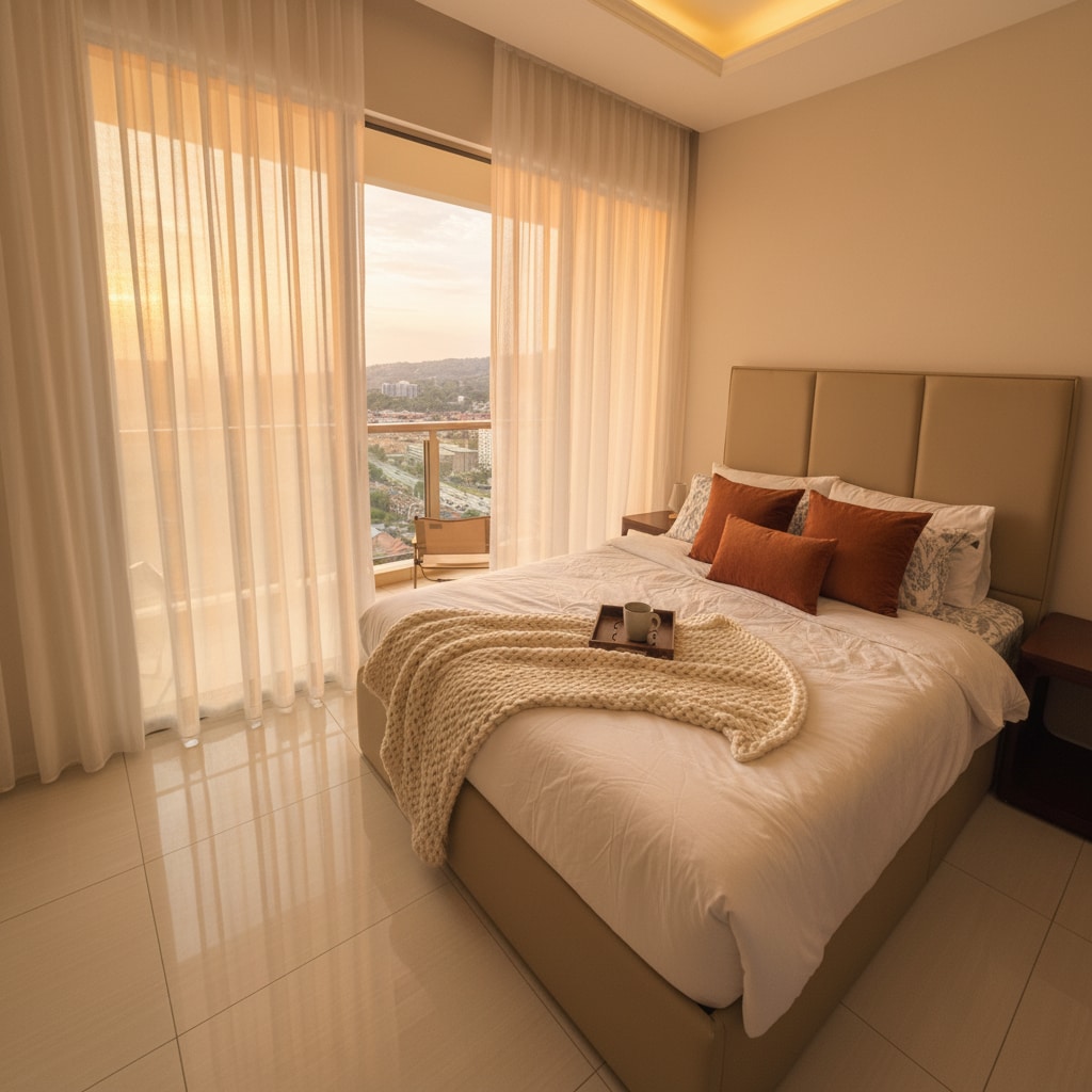 🏡 1-Bedroom Apartment with Balcony Spacious and comfy, featuring 1 King beds — perfect for a relaxing stay. 🛁 Bathroom: Equipped with hot water for a refreshing shower with Bathtub 🛠️ Facilities include: Pots, pans, utensils, rice cooker, water dispenser Body wash, shampoo, hand wash Refrigerator, microwave, kettle, rice cooker, washer/dryer Korean high-end water dispenser, sugar ,salt , oil 🌐 Connectivity: Free 100 Mbps Wi-Fi — fast and reliable 🚗 Parking: 1 parking space