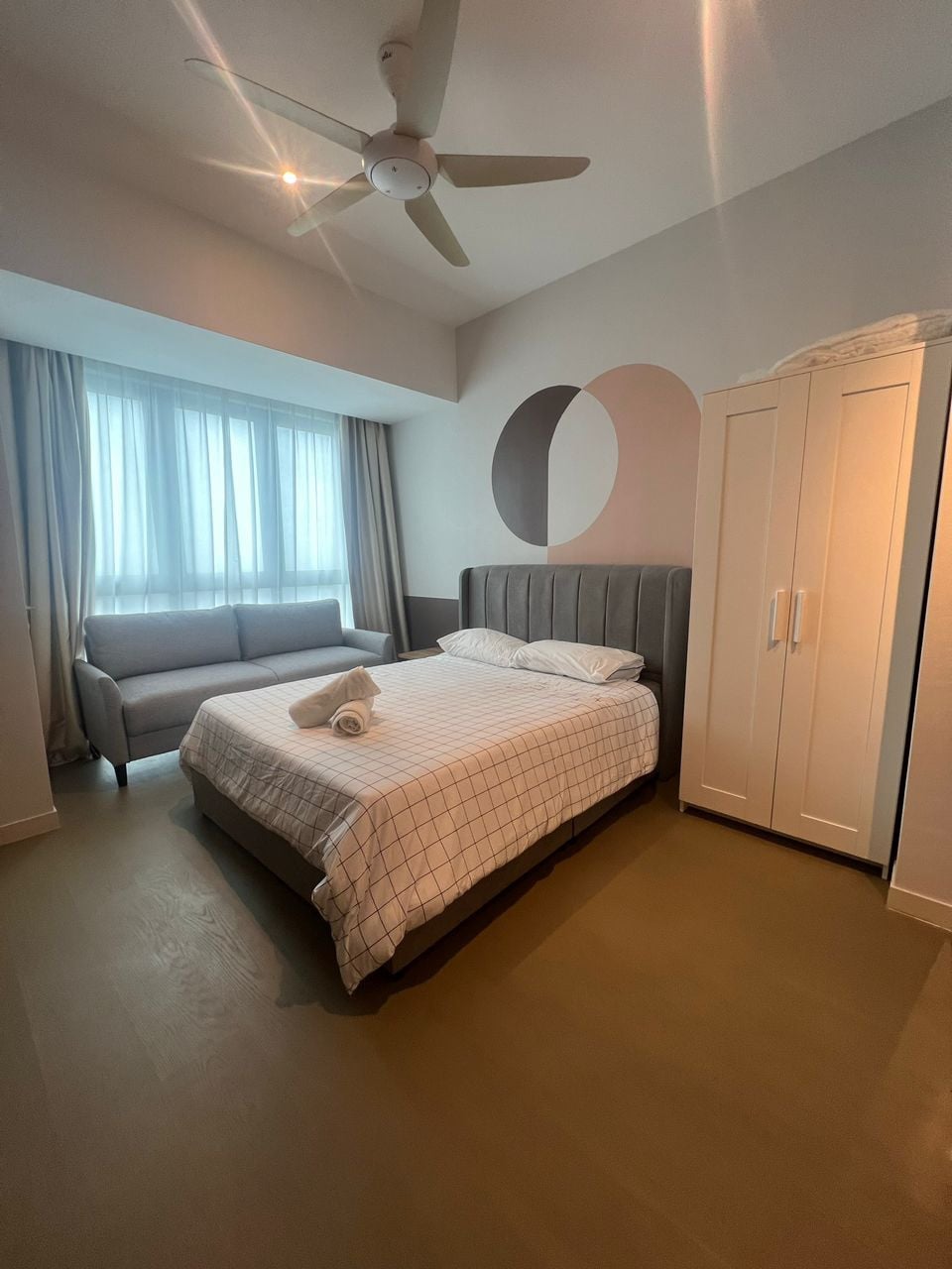 Find serenity in a modern condo away from the hectic city centre. Decor is done in relaxing neutral tones, and there's a pleasing view from high-floor windows. Work up a sweat in the gym and luxuriate in a bathtub before turning in for the night. Suite can comfortably accommodate up to maximum 3 adult guests and it comes with a king size bed in the master bedroom, 1 sofa bed in the living suitable for sleeping. Guest can access to facilities swimming pool, gym, games room, and badminton. If you are driving, the owner's parking lot could be used during your stay. We are contactable should Guest need any assistance or support. The condo is in the Mont Kiara township in northwest Kuala Lumpur. It's situated above a mall with an array of restaurants, cafes, bars, and a supermarket along with lifestyle and fashion shops. Getting into the city centre is a breeze from here. Getting around is rather easy as there are several pick up and drop off areas for ride hailing apps such as Grab that enable guest to commute.