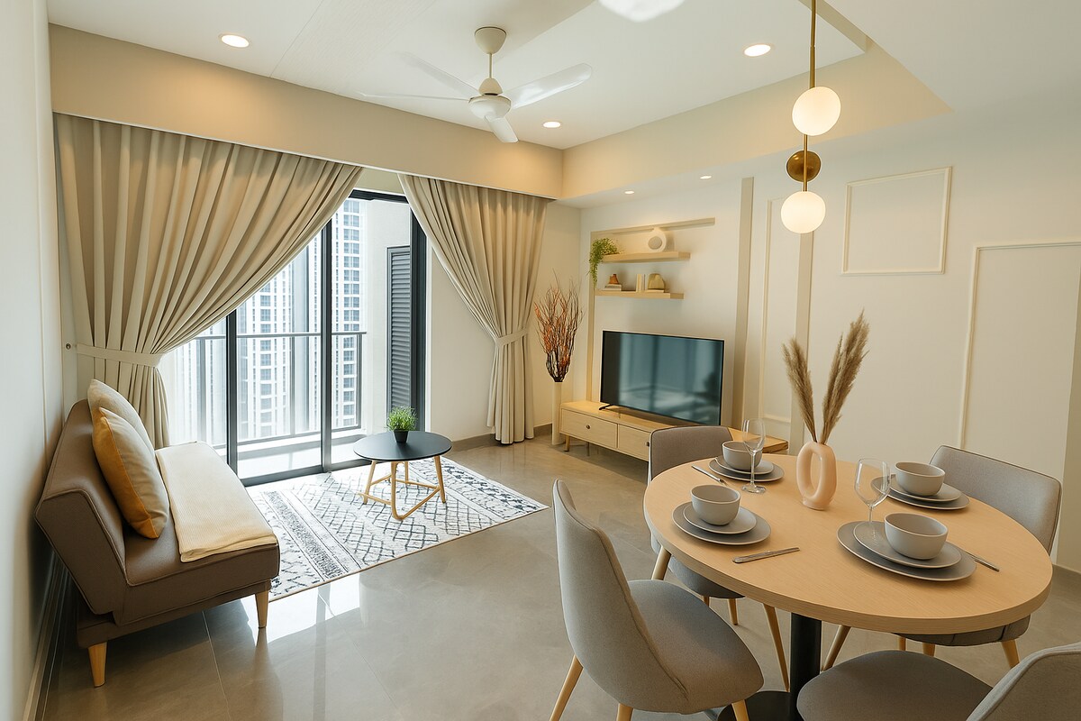 Posh | A Premium 1-Bedroom with a Touch of Warmth Discover an intimate retreat in this bright, warm one-bedroom, perfect for solo travelers or couples. Meticulously equipped with premium amenities, it’s ideal for up to 2 guests on long-term stays (or 3 for short visits). Located in safe, upscale Mont'Kiara and directly connected to Sunway 163 Mall, enjoy the ultimate convenience of having shops, dining, and groceries at your doorstep.
