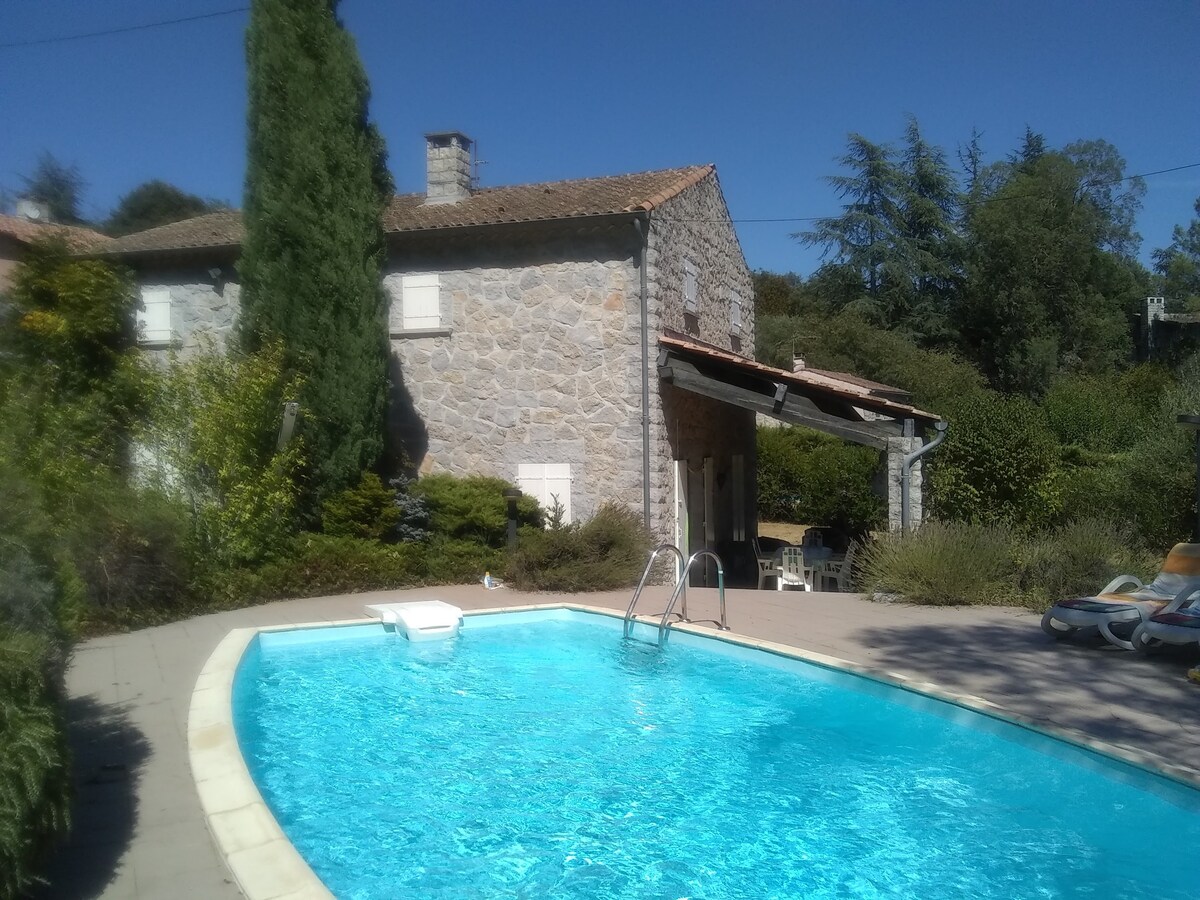 Maison située en lisière de bois, à 10 mn de Vogüé et de la baignade *0651174578 Boulangeries, Centre Leclerc et tous commerces à 5 mn. Très agréable, c'est un lieu toujours apprécié pour son charme, son calme, sa luminosité et sa très grande terrasse avec une vue dégagée. Située au carrefour des lieux phares qui font la beauté de l'Ardèche, la maison vous offre de nombreuses directions de balades, Gorges, canoé, villages de caractère, forêt de châtaigniers.