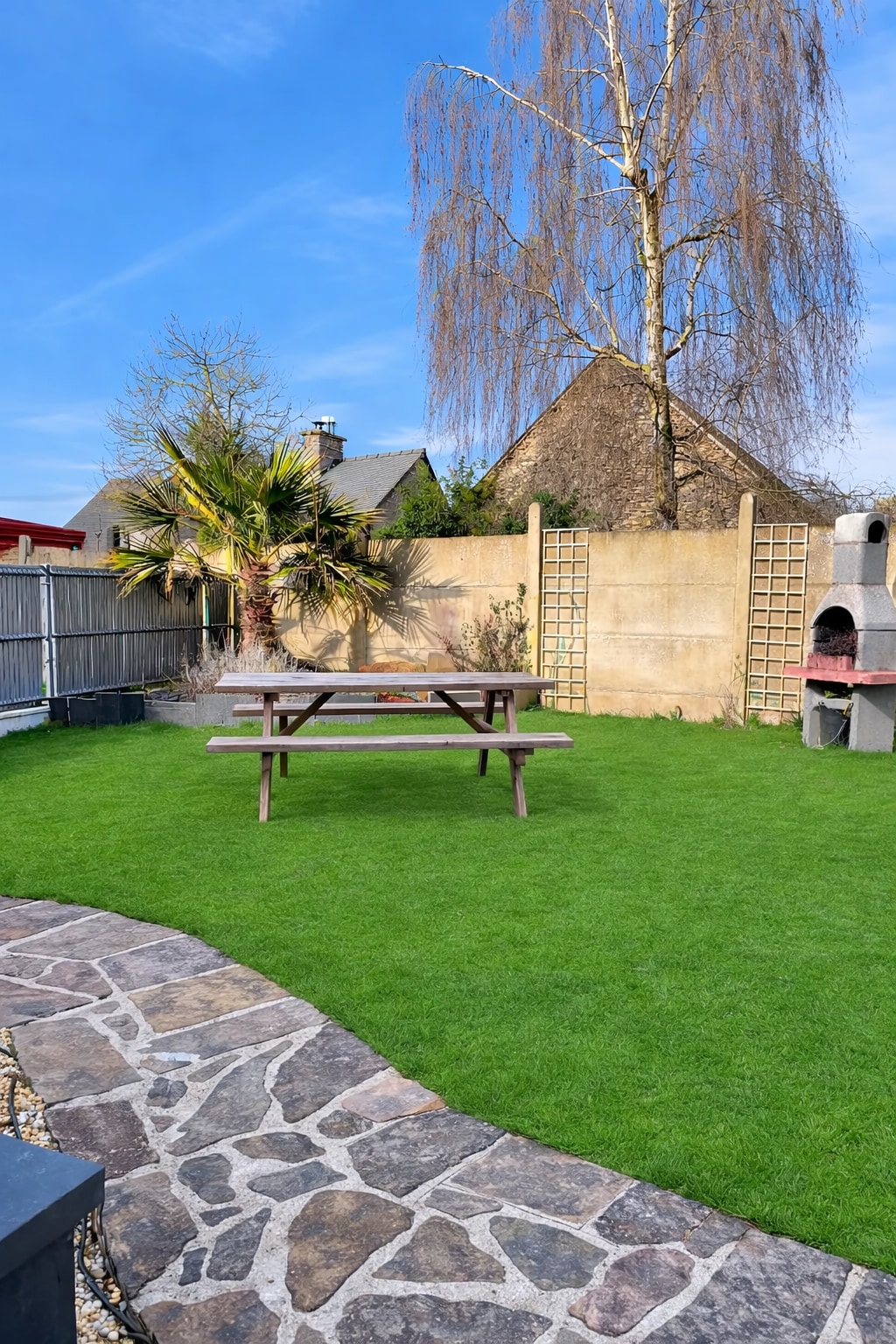 Charmante location de vacances en campagne, située entre Granville et Saint-Malo, à 7 km du Mont-Saint-Michel. Notre logement comprend une pièce de vie avec salon, télévision et cuisine toute équipée. Une salle de bain avec douche à l'italienne, WC, lavabo, sèche-serviettes. À l'étage, une chambre avec un grand lit 160 x 200 ainsi qu'un deuxième couchage type BZ de 140x190. Possibilité de lit parapluie. Vous trouverez une terrasse tout autour de la maison avec salon et table de jardin.