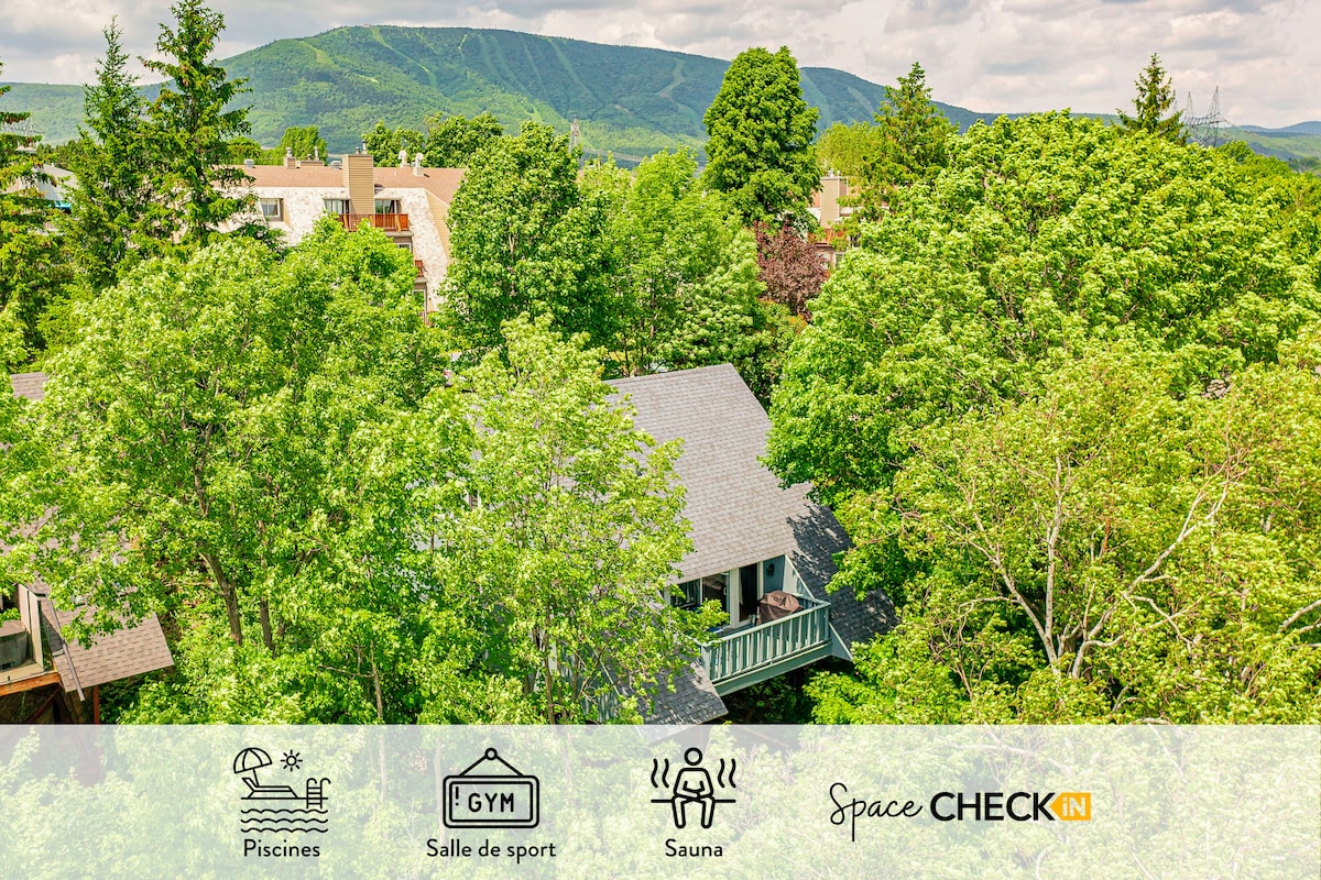 Welcome to our Sky House ✧ By Activ Chalets® Experience the charm of a treehouse with a private balcony overlooking the forest—your peaceful retreat just steps from Mont-Ste-Anne! ➳ 2 parking spots ➳ Elevated deck that feels like a treehouse! ➳ BBQ available year-round ➳ View on the St-Lawrence ➳ Indoor pool, outdoor pool, sauna, and gym in the complex (free access) ➳ Pack’n’play, safety gates & baby gear ➳ 2 minutes from Mont-Sainte-Anne ➳ 30 minutes from Old Québec & Charlevoix