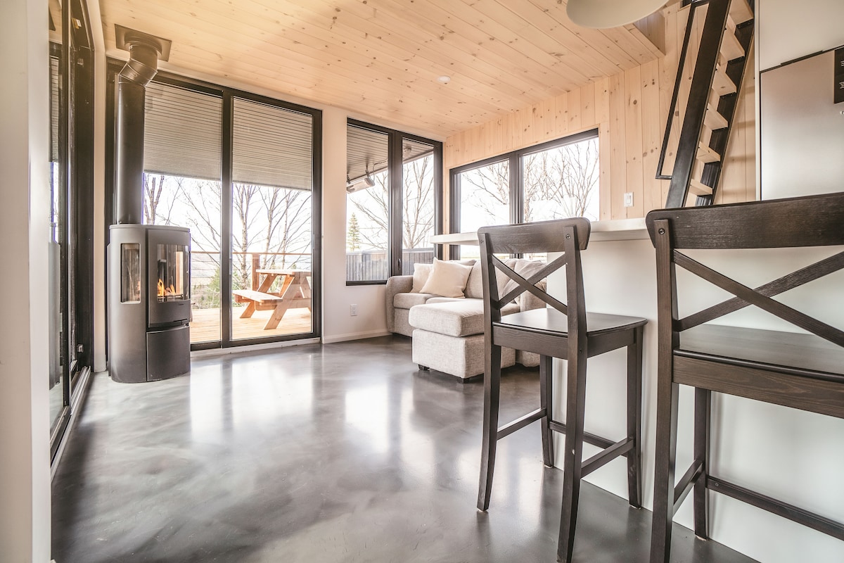 Nestled on an immovable rock since prehistoric times, at the heart of the mountain biking and outdoor network of Sentiers du Moulin, Tricera invites you to the summit of Maelström, at Mont Tourbillon. With its 360-degree windows, you won't believe the panoramic view of the mountains so close to the city of Quebec. Choose from the 4 different galleries to relax while being protected from the elements in privacy. With Tricera, glamping takes it to another level!