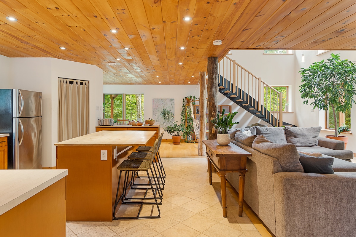 Situé au pied du Mont Sutton, ce havre de paix en forêt est constitué de deux chalets superposés, offrant ainsi une expérience unique. La construction neuve de 2019 séduit par sa luminosité et son aménagement à aire ouverte. Chaque chalet est entièrement équipé et décoré avec goût, vous assurant un séjour des plus confortables. De plus, nous avons veillé à une insonorisation adéquate pour garantir votre tranquillité. À seulement une minute des pistes de ski du Mont Sutton et 5 minutes du village