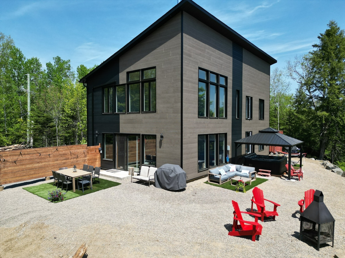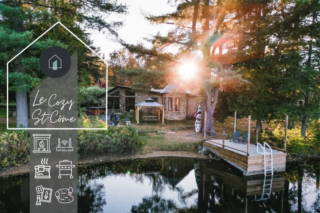 Welcome to our spacious and warm chalet Aux 4 Foyers! Here, your vacation will be full of rest ♪ ✧ Central AC ✧ Located only 60 minutes from Montreal ✧ Relaxation spa with a view of the lake! ✧ Fully equipped kitchen with a huge island and breakfast area. ✧ Work space, ideal for teleworking ✧ Indoor gas fireplaces + Pellet ✧ Outdoor Patio Heater ✧ Outdoor wood fireplace in summer ✧ 1 pedal boat, 1 kayak, 1 paddleboard