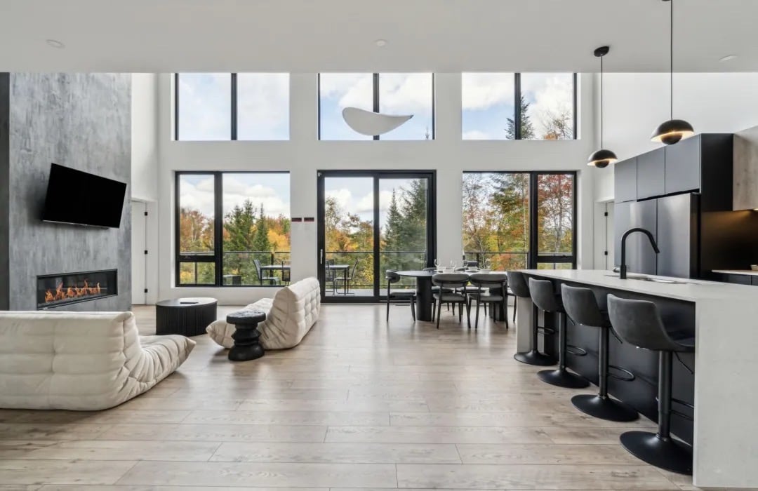 Fall in love with Tremblant. Our 5-bedroom home is nestled amongst trees, with abundant sunlight and a stunning view of Mont Tremblant. It is a four-season paradise just steps away from a trail network (biking, cross-country skiing) and a 6-minute drive to the ski hill. Lake, coffee shops, boutiques, restaurants, a hockey rink, a grocery store, and more are all accessible within a short walk in Old Tremblant. Enjoy complimentary VIP parking at the mountain with a short walk to the gondola.