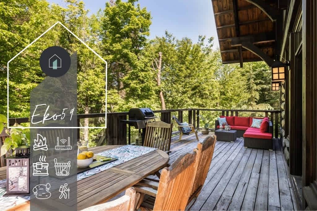 Unique haven of peace with breathtaking views! Located on a huge 100-acre estate with no nearby neighbors! Peace and tranquility guaranteed. Dogs accepted on condition until June 15. Dogs not allowed in high season. Cross-country skiing, snowshoeing and hiking trails on the doorstep. Spa with breathtaking views! In winter, a 4x4 vehicle is required to drive up the road to the chalet. THERE ARE CAMERAS ON THE PROPERTY Dogs welcome before June 15th + fees (no dogs in pick season). CITQ #30336