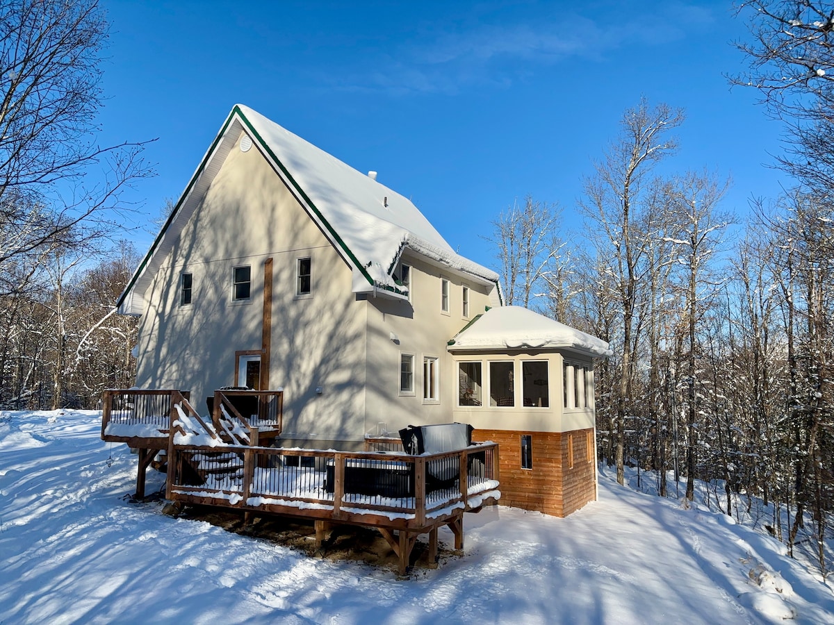 Profitez de l'effet apaisant de la nature en séjournant dans ce chalet contemporain à fenestration abondante en plein coeur de la forêt. Tremblant est magnifique, peu importe la saison. Destination plein air de rêve, vous serez à 8 minutes du Mont-Blanc et 20 minutes du Mont Tremblant. Que ce soit pour la randonnée, le ski de fonds, la raquette ou la motoneige, des sentiers sont accessibles facilement dans toutes les directions. Sans oublier le célèbre P'tit Train du Nord à 3 minutes de route.