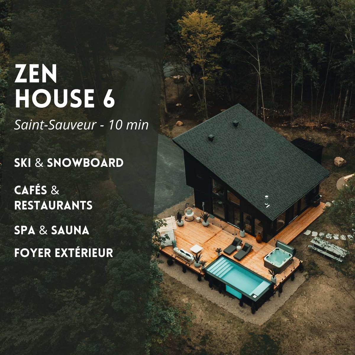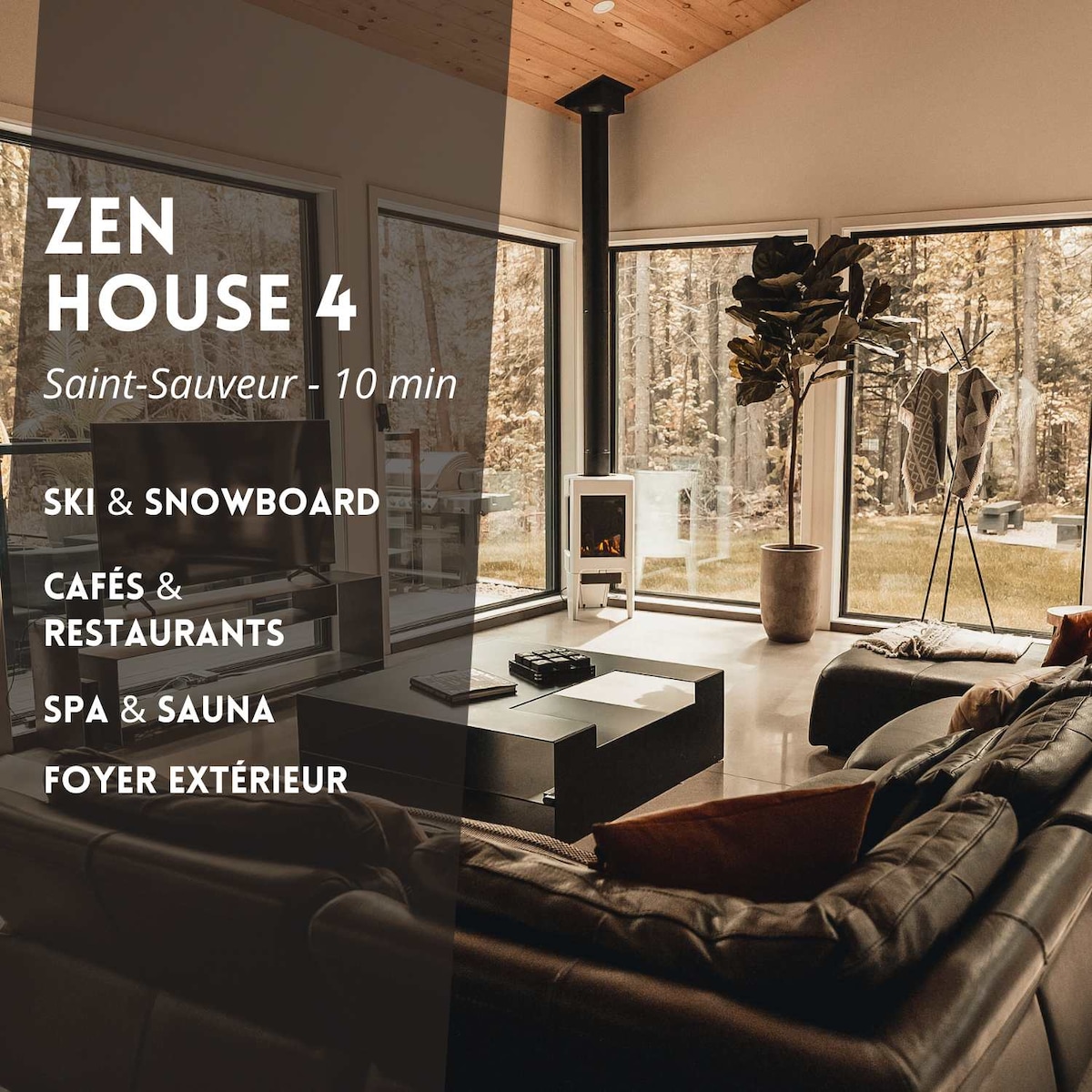 Welcome to Zen House 4 ! A contemporary retreat designed for rest and relaxation in the heart of nature. With its clean lines, abundant natural light, and calming atmosphere, the space invites you to unwind from the moment you arrive. The villa comfortably accommodates up to 14 guests, making it ideal for families or groups. Surrounded by trees and complete with a spa, heated pool, sauna, and fire pit, it’s the perfect place to disconnect and recharge.