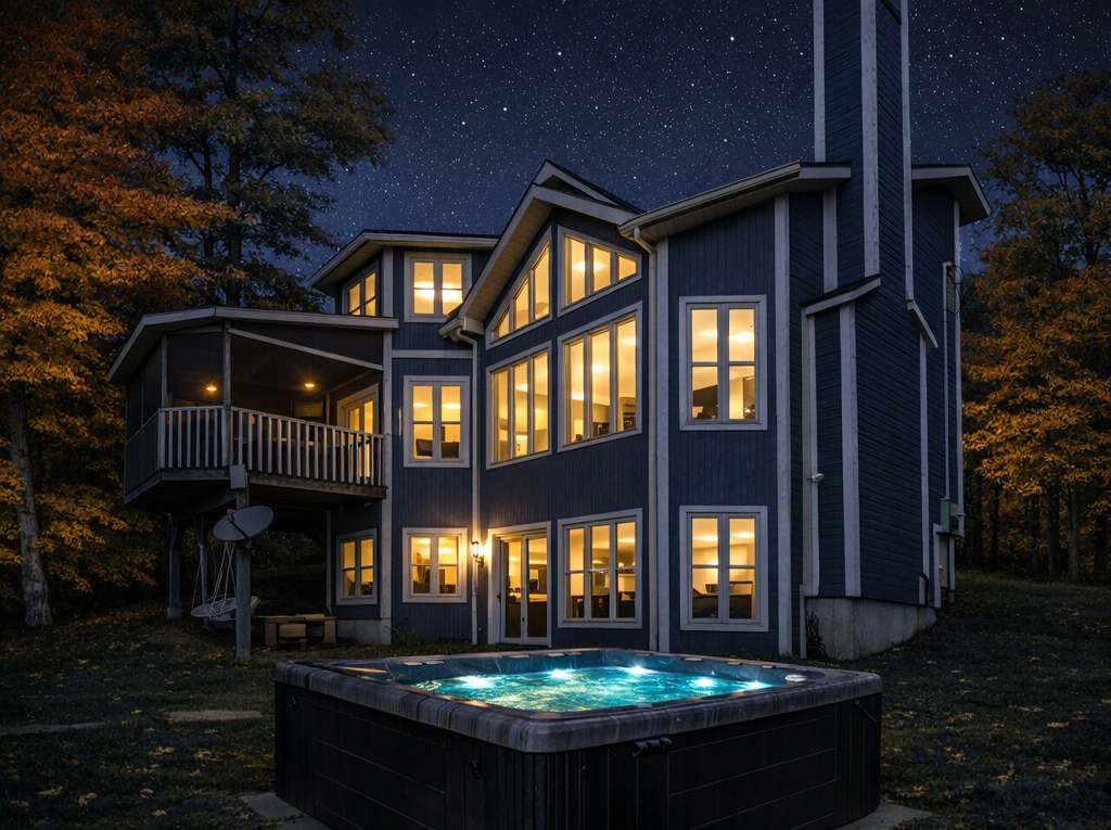 Welcome to Casa Tulum, where boho-chic design meets the beauty of Mont-Tremblant. Custom-built, this retreat feels like living in the forest with floor-to-ceiling windows, peaceful privacy, and stylish interiors. Enjoy the hot tub, fire pit, and chef-ready kitchen—perfect for family meals. Whether for a ski trip, summer lake escape, or a relaxing getaway, Casa Tulum offers comfort, style, and unforgettable memories.