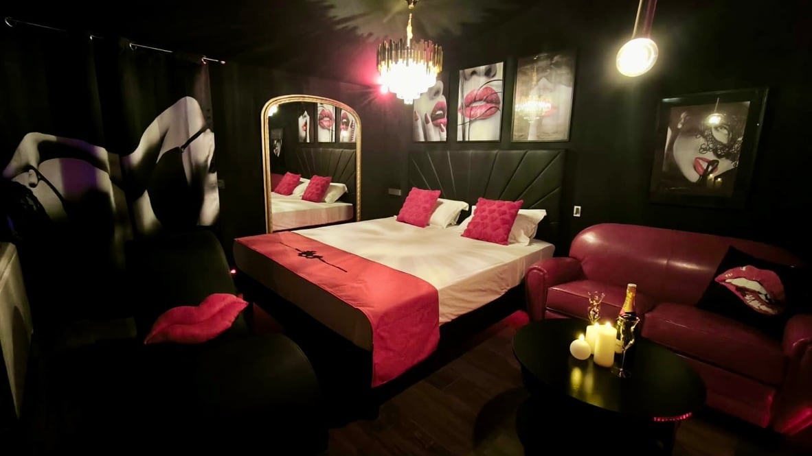 Les clés de la Volupté est une suite immersive alliant luxe et sensualité. Son lit king size, sa baignoire balnéo, sa TV connectée et son coin cuisine avec frigo et cafetière garantissent un confort absolu. L'atmosphère est sublimé par un système audio connecté et des jeux de lumière. Une croix et un fauteuil Tantra ajoutent une touche exclusive à l'expérience. Le linge de maison est fourni et des options permettent de personnaliser votre séjour.
