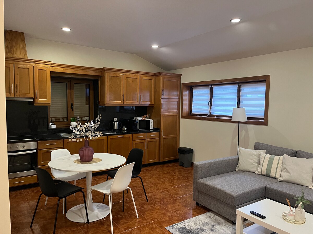 Located in Gerês, this 50 sqm studio accommodates up to 3 guests and features 1 bedroom and 1 living room with 1 bathroom. You will find a well-equipped kitchen, high-speed WiFi for video calls, television, and mountain views. Family-friendly amenities include a baby bed and high chair for your convenience. Step outside to enjoy your private garden, uncovered terrace, and private outdoor pool. A private grill is available for outdoor dining while taking in the peaceful mountain surroundings.