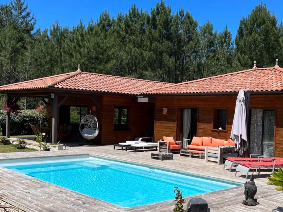 La Cabane Océane, villa d'architecte à la décoration soignée vous accueille confortablement avec ses 4 chambres, 2 salles de bain, une cuisine toute équipée et son cellier. La villa est lumineuse avec son séjour spacieux s'ouvrant sur un agréable jardin nature et tranquille avec sa piscine chauffée (8x4). Une piste cyclable devant la maison vous amène aux plages. Ménage forfaitaire a régler sur place 220€. Soyez assurés que nous mettrons tout en oeuvre pour que vous passiez un agréable séjour.