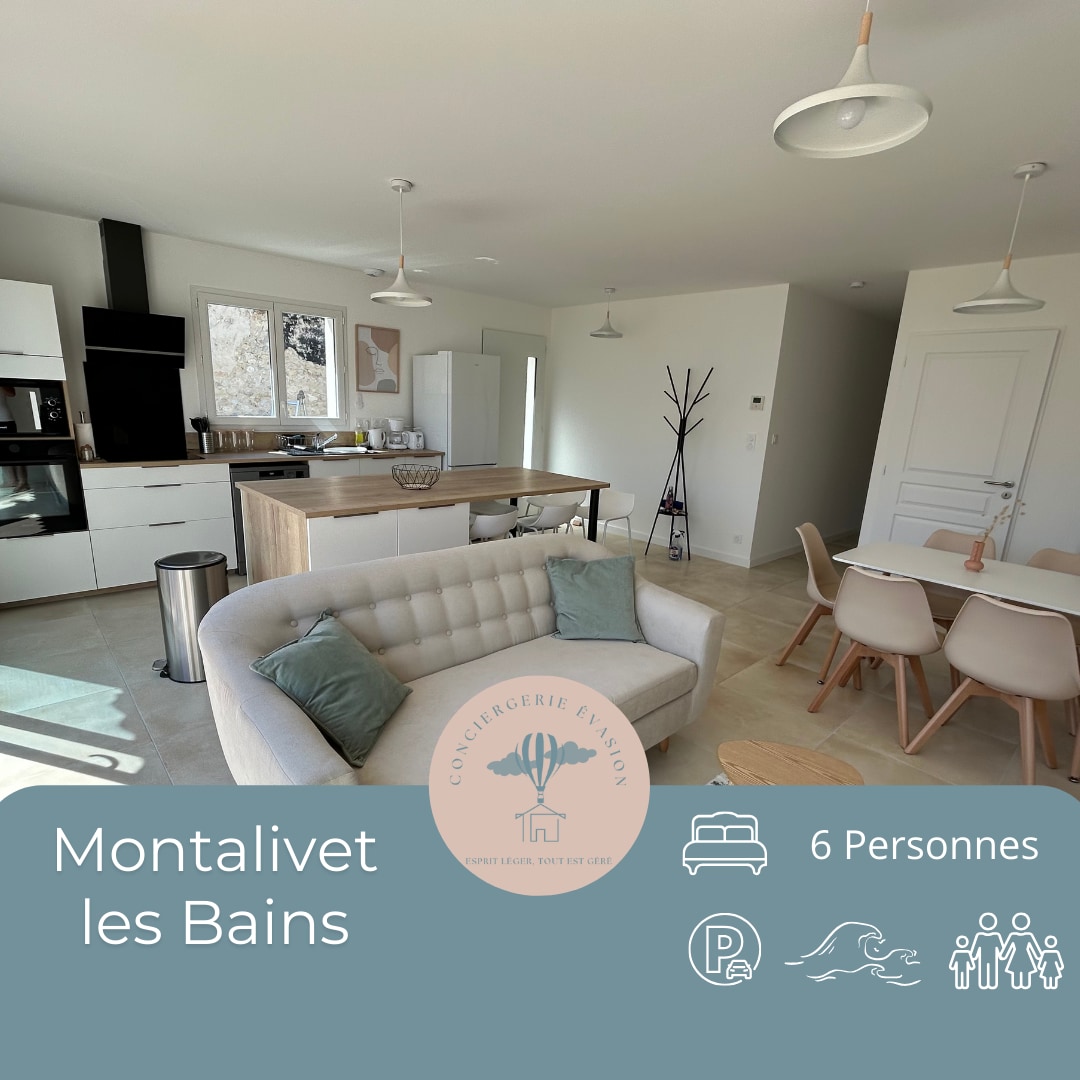 Maison de Vacances à Montalivet. (English speaking Host) Maison neuve pour 6 personnes située au calme à 1,2km de l'océan (environ 12 min à pieds). Entièrement équipée et aménagée, vous vous y sentirez comme chez vous! Composée de 3 chambres dont une suite parentale, 2 salles d'eau au total, 2 WC, une terrasse couverte avec barbecue/plancha/salon de jardin et table extérieure. Cuisine entièrement équipée (lave-vaisselle-four-induction-micro-ondes-lave linge- machine à café -grille pain etc)