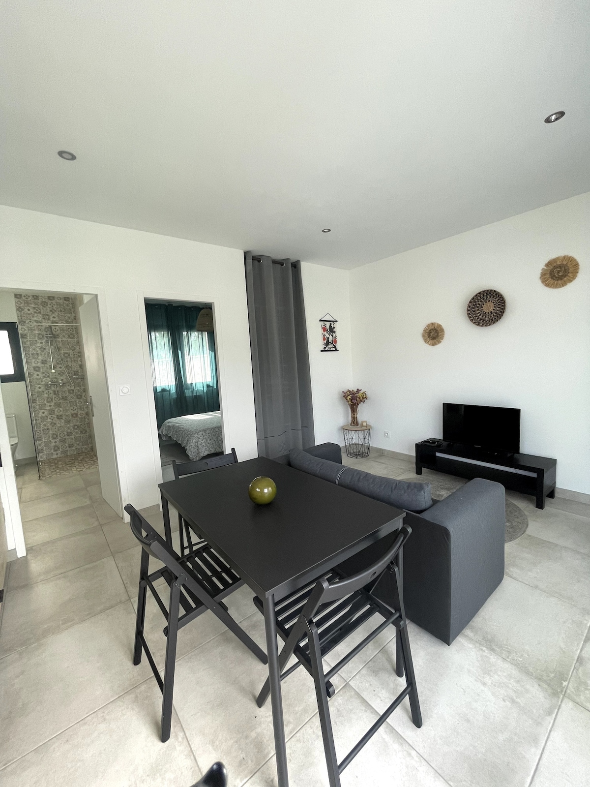 Appartement privatif dans maison Studio cabine 25 m2, tout doux en déco, refait à neuf 2024 💆🏻♀️ ⚠️Route passante : nos tarifs sont en cohérence avec la proximité de la route, ne réserver que si vous serez positif au moment de la note 5/5. Vous apprécierez la proximité de la station balneaire (grande surface 250m, basilique 450 m, plage centrale 1 km, gare 1 km) Parking gratuit à 250 mètres Terrasse pour garer : moto ou vélo Jeux pour enfant sur demande 💆🏼♀️SPA/JACUZZI only en été