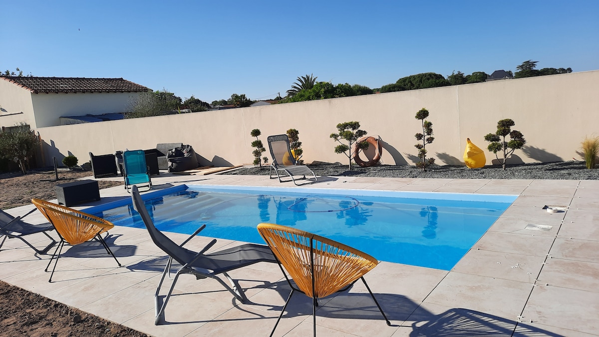 Jolie maisonnette de plain-pied, indépendante, au calme, climatisée, normes PMR, à la déco soignée. Le Pit'Arésien, gîte idéalement situé. Nous habitons sur place, à votre disposition pour divers services ( baby sitting, pet sitter...) Parking privé et clos. Espace extérieur perso et partagés (piscine...) Linge de lit, de toilette et de maison fournis 4 couchages et 1 lit bébé Vélos adultes à disposition. A deux pas du marché, du bourg, de la plage...