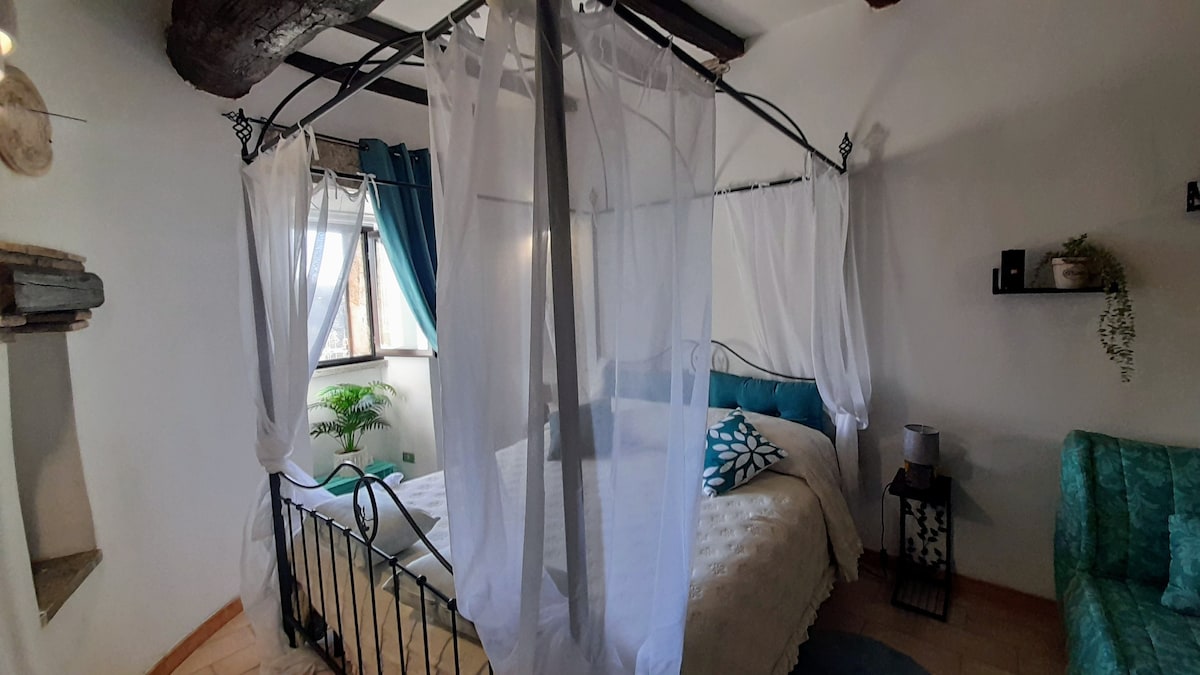 Alloggio situato in Piazza della Trinità, nel centro storico di Viterbo. Adatto per coppie e famiglie con bambini, è parte della casa di famiglia, ed è stato ristrutturato di recente. Completamente indipendente, molto luminoso, è composto da due ampie camere con letto matrimoniale, bagno, cucina e soggiorno. Terrazzino con affaccio sul giardino interno, ideale per colazione o aperitivo con vista su uno dei più bei panorami di Viterbo.