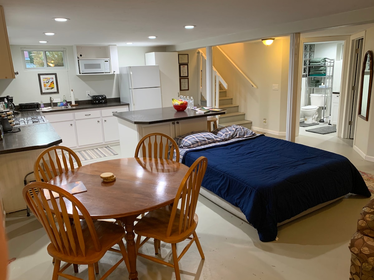 Our guest studio is brand new and has a separate private outside, upstairs entrance. You will be a 5 minute drive from downtown Whitefish and staying in a beautiful, rural area of Whitefish. Our property rests on 5 acres and wildlife are frequent guests here. The guest studio has a very comfortable king sized bed with organic linen bedding. Black out shades are provided. There is a shower/bath combo in the large bathroom (separated by a door) and a hanging rod available for clothes
