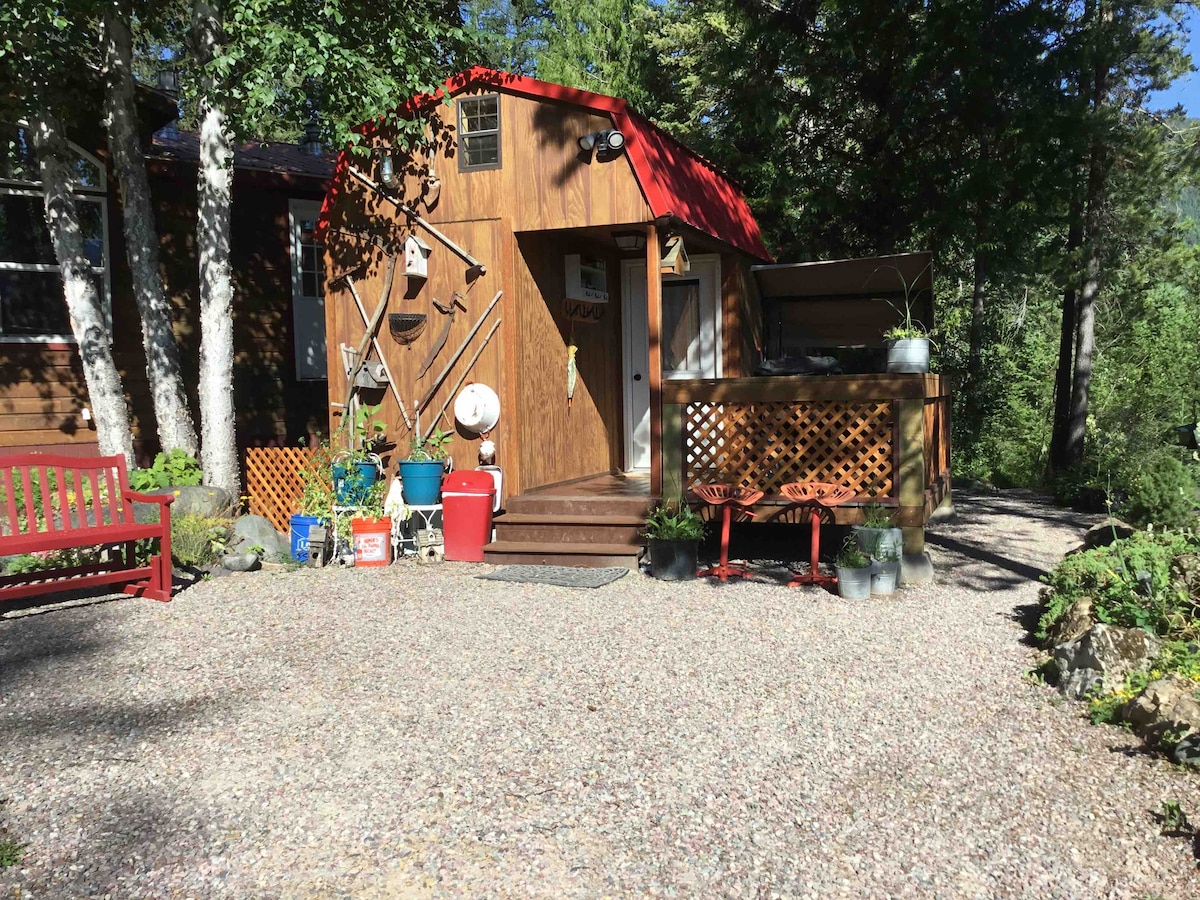 Experience the charm of a cozy, rustic tiny home nestled in our family community in Evaro, with Missoula just a quick 15-minute drive away. Take a leisurely stroll along the picturesque country road to reach the renowned Kampfire Steakhouse. Alternatively, savor your own meal prepared on the outdoor gas grill and unwind by a crackling campfire beneath a starry sky. At day's end, perhaps after a sit in our shared sauna, climb into the cozy loft bed for a restful night's sleep.