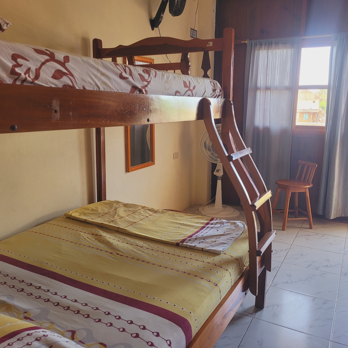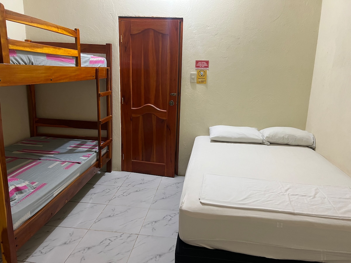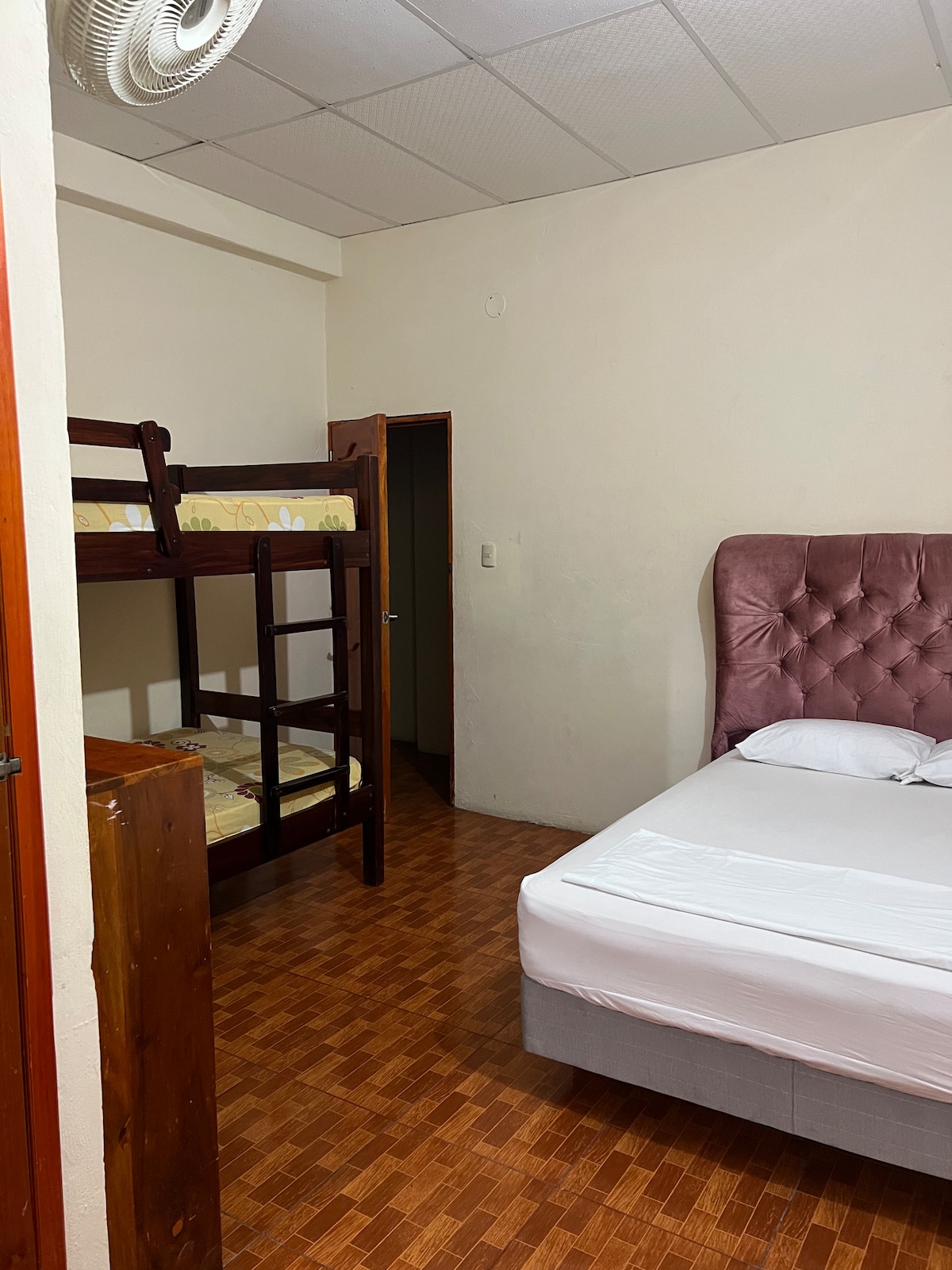 Disfruta de una estancia cómoda en esta habitación de un hostal pequeño, ideal para viajeros que buscan comodidad y practicidad. Cuenta con dos literas para 4 personas, Él baño es privado, con ducha, toallas suaves y artículos básicos de higiene. La habitación también dispone de ventilador y acceso a Wi-Fi gratuito. Ubicada en una zona céntrica, tienes fácil acceso a restaurantes, tiendas. ¡Te esperamos para brindarte una experiencia relajante y sencilla durante tu viaje!
