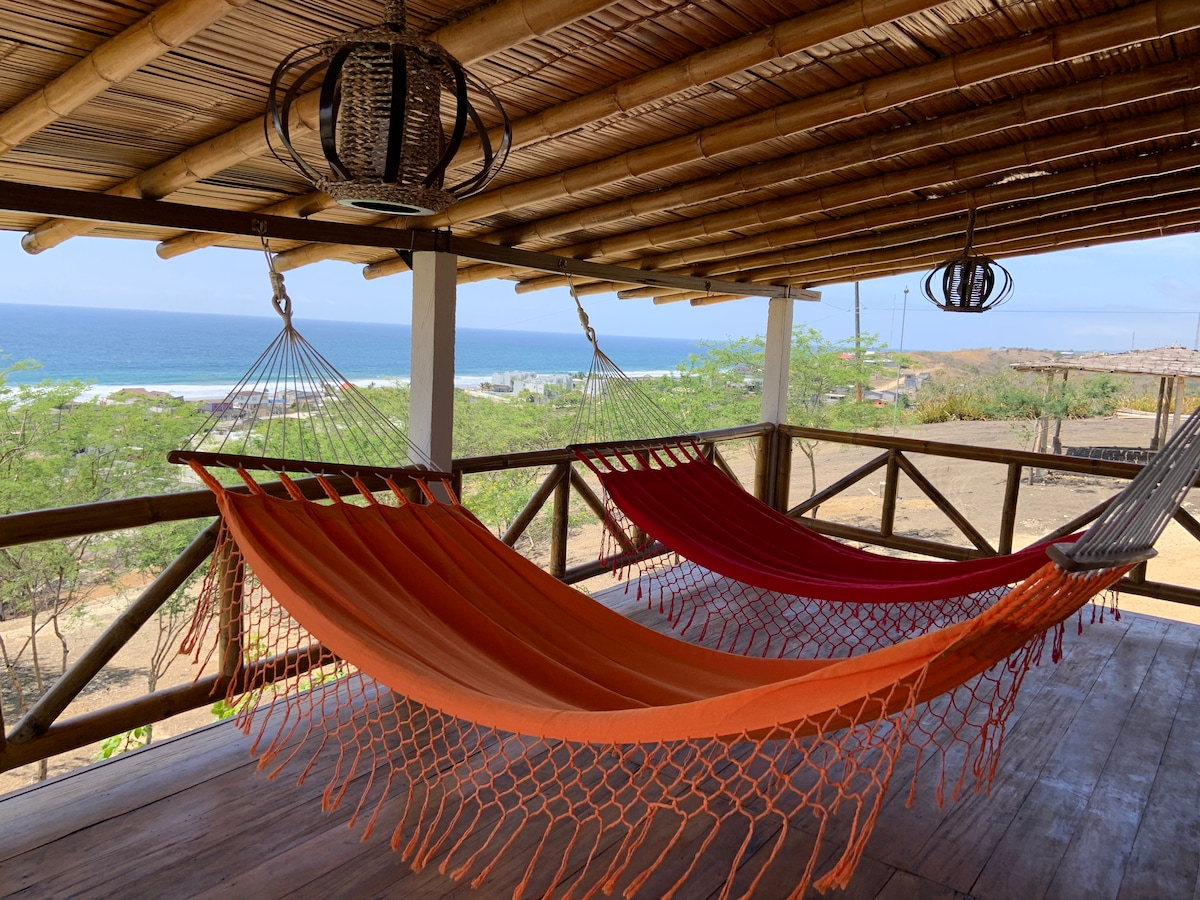 Our house features all modern amenities and it's located in a quiet, relaxing and safe neighbourhood. Green and sky views from your bed or any part of the house. Nice backyard, comfortable patio with hammock, completely equipped kitchen, private parking and relaxing surroundings. Less than a minute by car away from downtown Manglaralto and grocery stores bakeries and more. Walking distance would be 10 minutes- Just five minutes away from Montañita and easy access from the main road.
