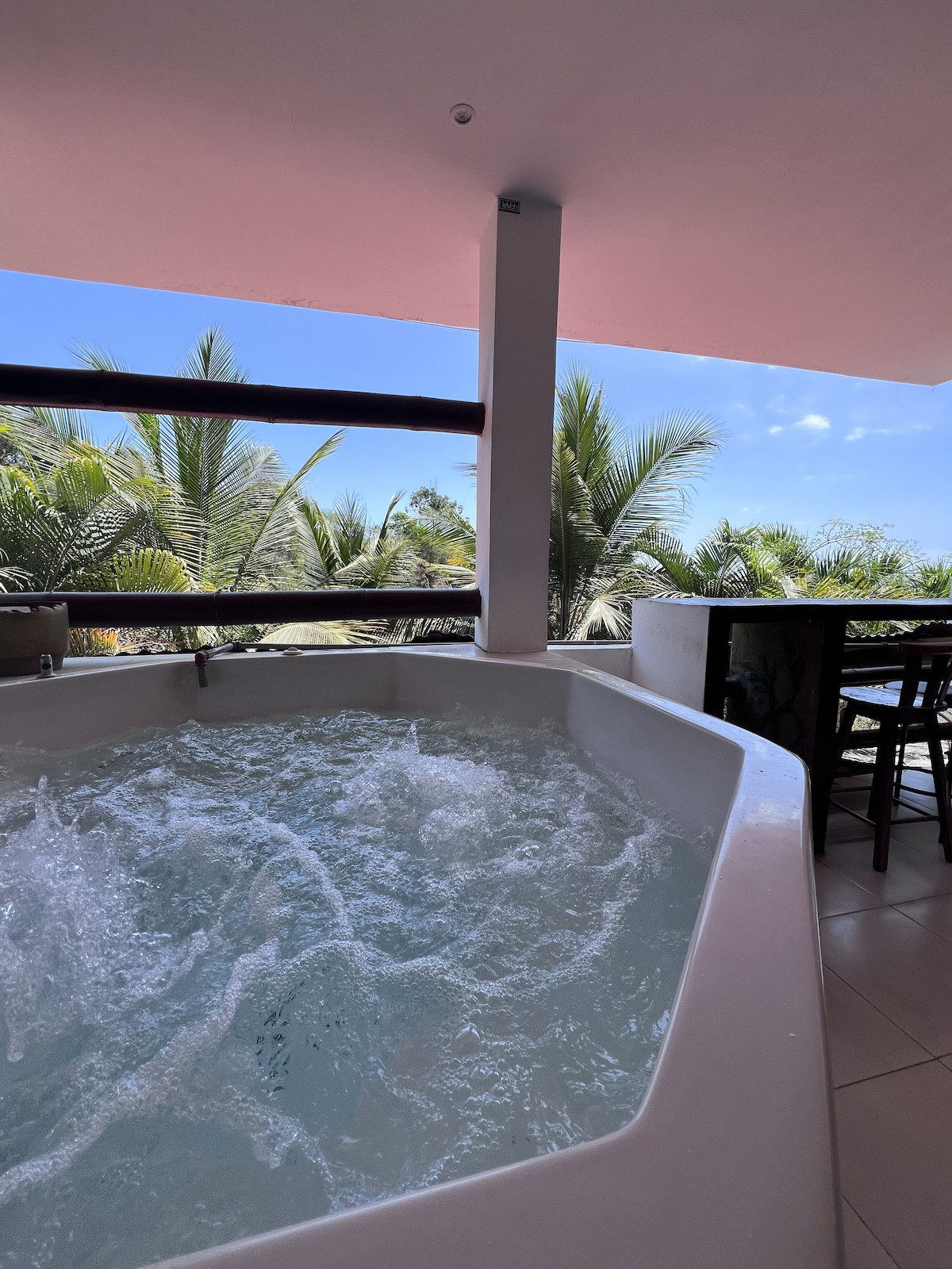 Peaceful house surrounded by nature, located on Dos Mangas road, just 10 minutes from the beach. A comfortable and quiet space, ideal for remote work, with stable Wi-Fi, air conditioning, and areas designed for focus and productivity without interruptions. After work, relax in the jacuzzi or enjoy nearby activities such as hiking, yoga, horseback riding, and wellness experiences in the area. ✔️ Reliable Wi-Fi ✔️ Quiet and peaceful environment ✔️ Private parking ✔️ Nature and comfort combined
