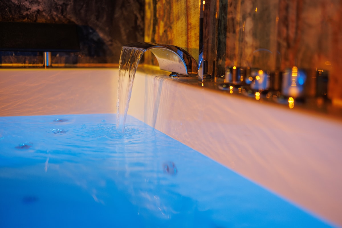 漂亮的套房,配有按摩浴缸、桑拿房、大屏幕电视