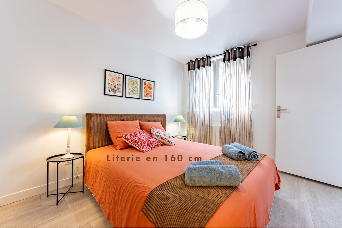 Détendez-vous et profitez d'une nuit accompagnée d'un Sauna 2 places. Entrée autonome avec boîte à clé, parking gratuit sur le trottoir public. Appartement cosy pour deux personnes aménagé à neuf avec tous les équipements du petit confort au quotidien . Canapé électrique qui permet de s'allonger pour profiter d'un bon film/ série NETFLIX . Très bien situé avec toutes ces commodités à 1 Min à pied ; Tabac, banque, pharmacie, épicerie, Boulangerie, Boucherie . Chambre : Lit de 160/200.