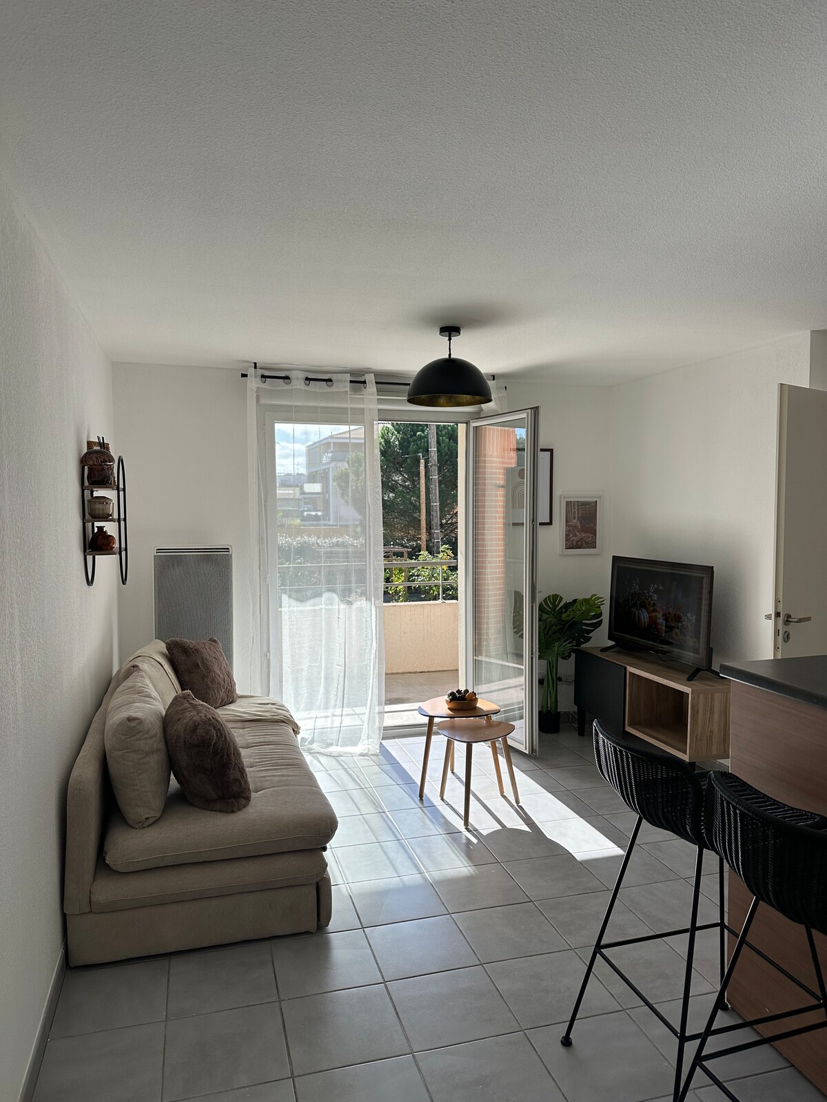 Montauban au centre ville, dans une rue calme à proximité du célèbre MIB, des restaurants et de la place nationale. Appartement dans immeuble ancien, rénové avec goût de 44m2, climatisaté Il peut accueillir 2 voyageurs (lit parapluie sur demande) L appartement se situe au 2ème étage. Le salon est spacieux et lumineux, avec canapé table de repas, tele, WiFi. La cuisine est très bien équipée La chambre se situe derrière le salon avec une verrière avec placard et literie neuve draps fournis.