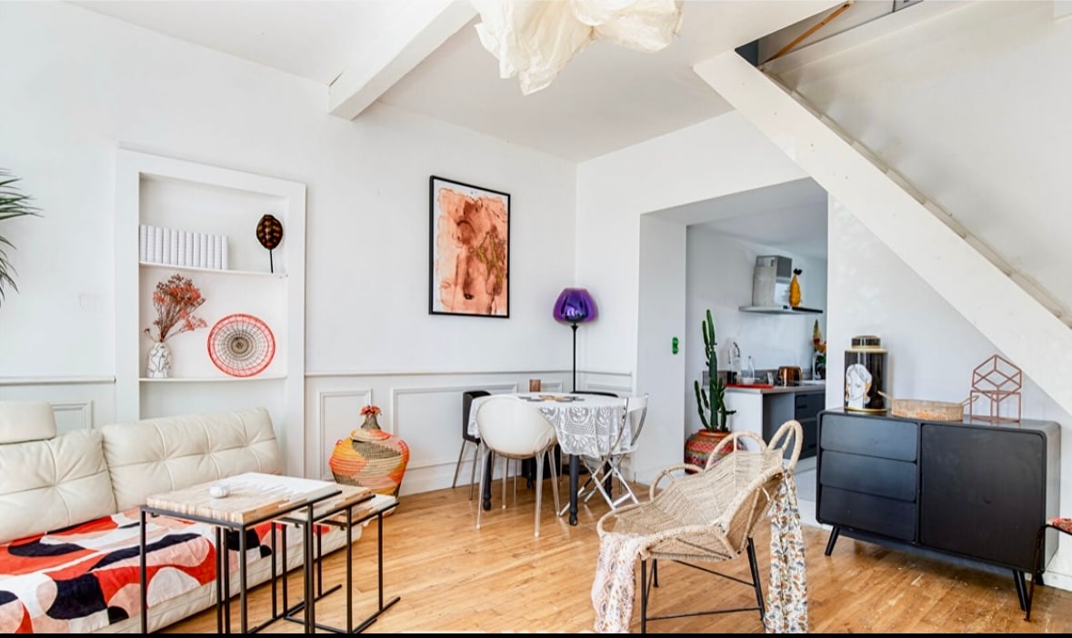 Dans un ancien relais de poste du XVIIIème, appartement T2bis refait à neuf avec terrasse au 1er étage sans aucun vis à vis, totalement indépendant, calme et élégant comprenant : terrasse aménagée avec salon de jardin, plantes. Le plus : aucun vis à vis et vue sur coucher de soleil pièce de vie avec cuisine très bien équipée, séjour spacieux (canapé convertible pour couchage en 140) et coin bibliothèque/bureau chambre (lit en 140, 2 chevets, armoire) salle d'eau, wc Parking privé