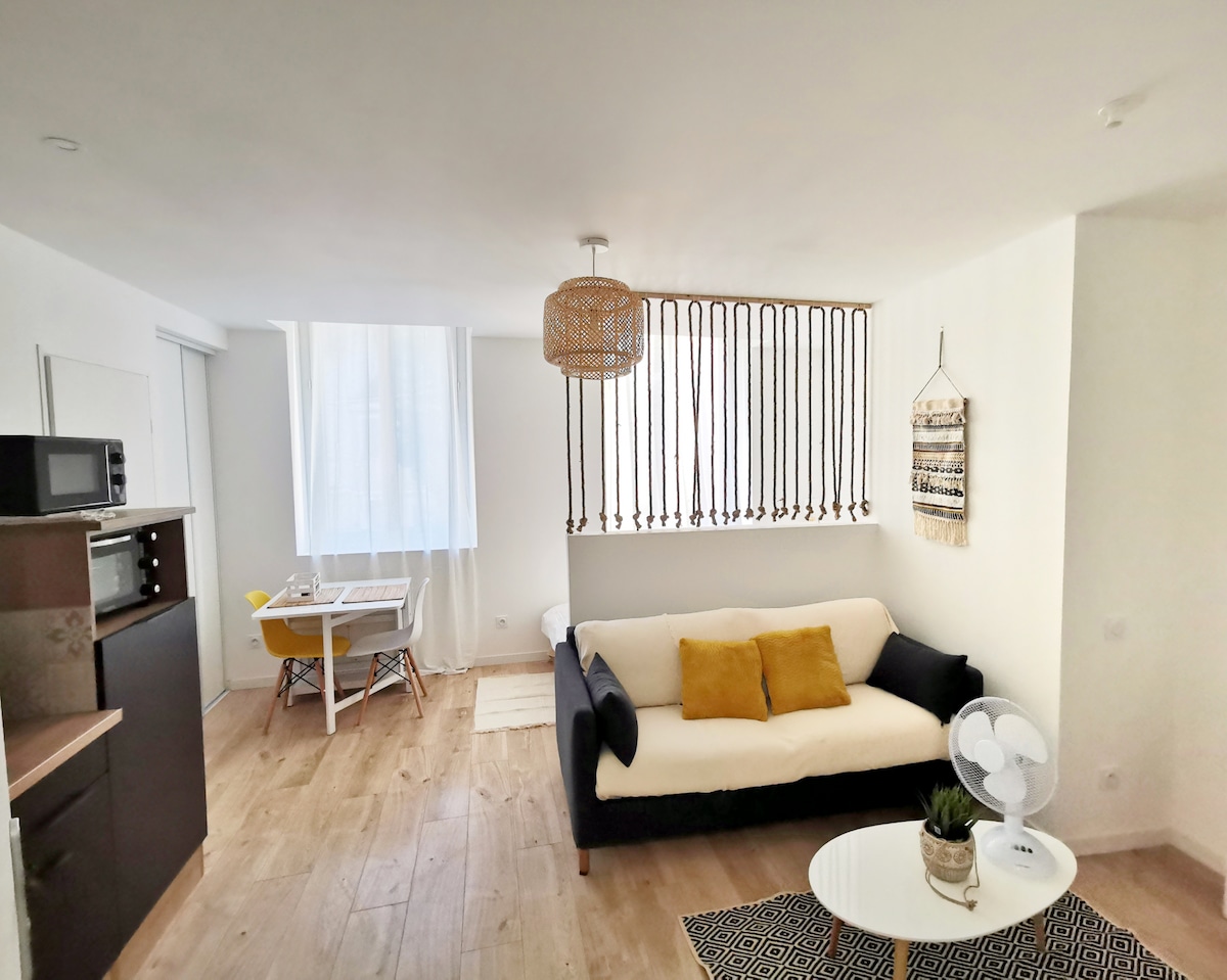 Bienvenue chez nous. Que ce soit pour une nuit ou une plus longue période, vous vous sentirez immédiatement comme à la maison dans ce studio cocooning au cœur de Moissac. A deux pas du centre historique, religieux ou de la gare, vous pourrez profiter des évènements, des sentiers de randonnée, des expositions, des concerts… Pour un week-end en amoureux, entre ami(e)s ou pour vos déplacements professionnels, vous trouverez tout le confort dont vous aurez besoin :) Bienvenue chez vous.