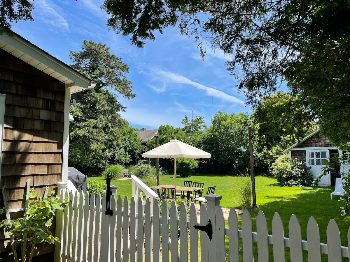 Scandinavia meets Montauk in this sophisticated, comfy, all-season getaway with open-plan interior & large, private fenced yard. • 950 sq ft, 2 BRs (compact but comfy), 1 Ba, full high-end kitchen, W/D, A/C • Wood stove, Solo stove, patio, outdoor shower, high-end linens & furnishings/decor • Steps to LI Sound & Harbor. 3 mi to ocean/Town • Owner is in a private studio w/ own entrance in the house. No shared spaces! • Ask about dogs & flexible rental periods CLICK MORE for IMPORTANT INFO!