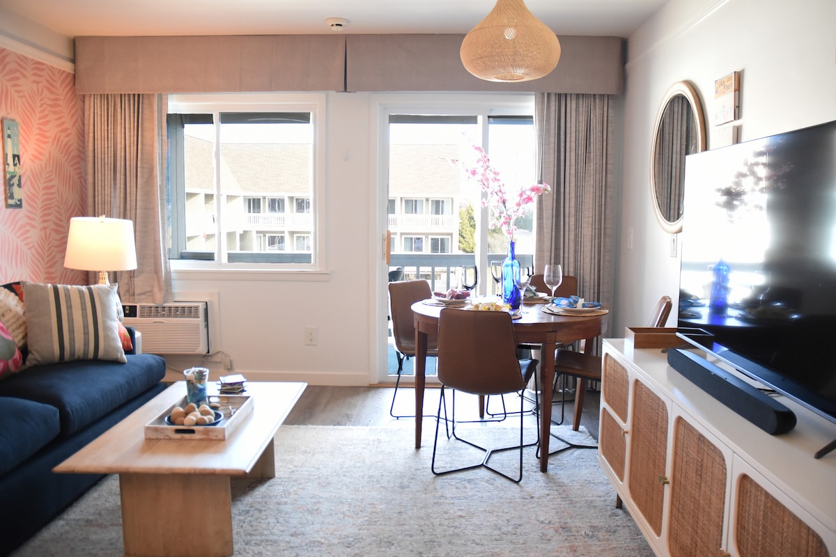 Escape to our stylish, second-floor coastal suite in Montauk, just steps from the sand! This bright, railroad-style retreat comfortably fits 4 guests. Enjoy a private terrace with pool views, fast WiFi, and easy access to the beach and town. Perfect for a sun-soaked vacation or a quiet getaway, with two pools available seasonally. Your ideal Montauk adventure starts here!