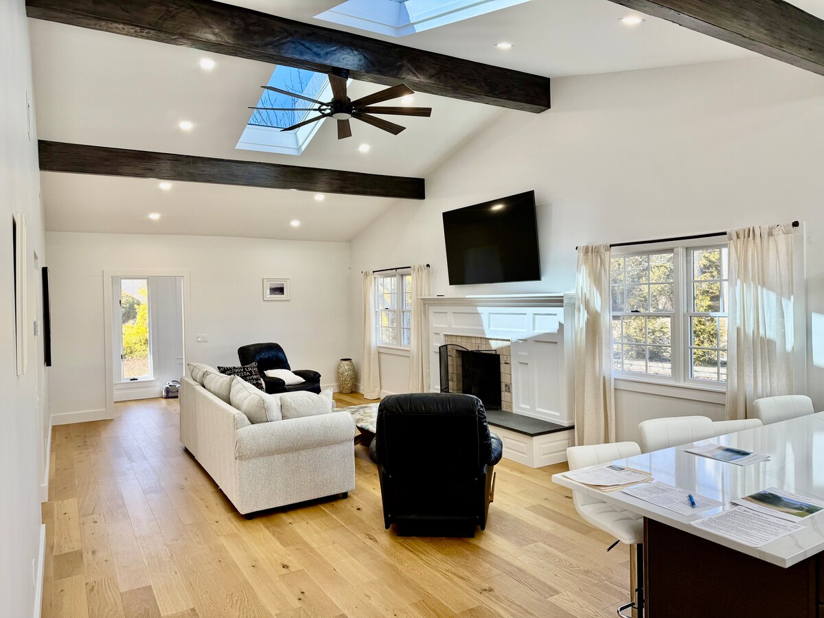 You won't worry about getting sand on the floor. Feel the ocean air. Short walk to town. Beautiful light, spacious living & dining rooms. 10min drive to beach. 20min to wineries. Central AC, Fiber WiFi. The hamlet of East Quogue is a destination for fresh food: one of the only local fish markets on Long Island, gourmet Italian butcher, farm stands, wine store, sushi, bagel shop. Nine beds upstairs that can comfortably accommodate 10. We only host guests w/ reviews . No dogs. Thanks for looking.