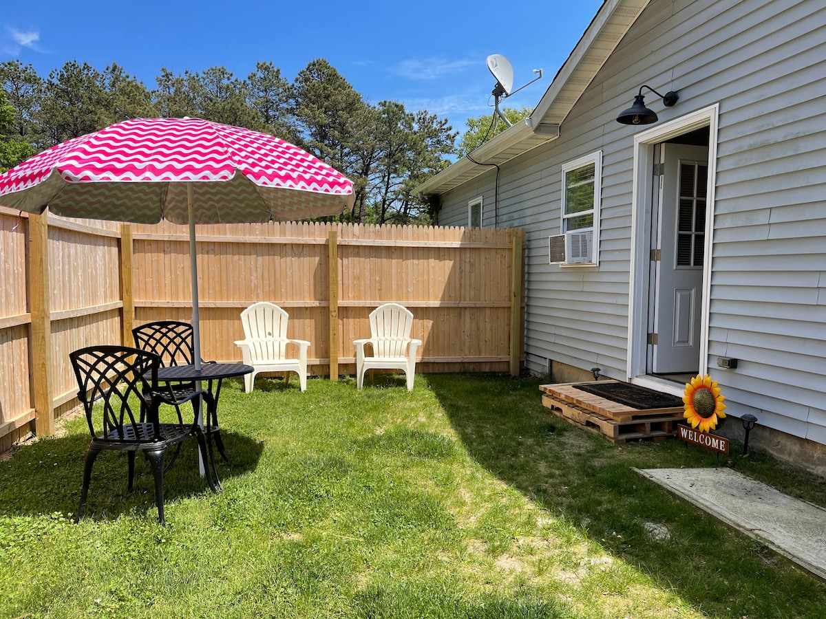 Welcome to the hamlet of Ridge. The gateway to Long Islands many treasures. Whether you are adventuring out to the North Fork wineries or a scenic drive on the south shore on your way to the Hamptons. A peaceful cozy private (not shared space) full studio apartment on the main level portion of house. Full size bed, with additional small futon couch in sitting area, kitchenette with dining area, full bathroom and private yard with outdoor seating. Everything you need to enjoy your stay.