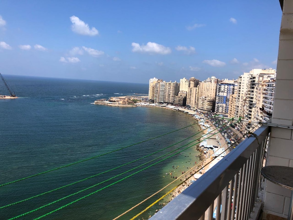The best panoramic view of the sea from 2/3 of the rooms on the 17th floor (2 elevators) with all equipment for a comfortable stay The best location in Alex: * in front of the famous Beau-Rivage Beach * You can see Miami Island and (45th Bridge ) from the apartment clearly. * Two min. from the main (45th St.) & Fathallah hypermarket * 5 min. from Khalid Bin Al Waleed St. (but the building is in a quiet area) * 10 min. from Montazah Palace