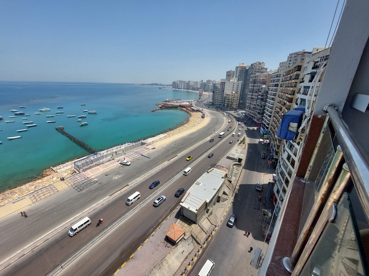 Your Luxurious 14th-Floor Mediterranean 🏖️!Getaway in Alexandria Imagine waking up to panoramic sea views from every corner of your apartment – even !from your bed Designed to maximize your sea experience, this spacious apartment is perfect for .families A room with three 120 cm beds.The other room has a 120 cm bed and a 170 cm beds "Dining, reception, living areas offer breathtaking sea views (West, North, East), perfect for enjoying cool breezes, ideal for soaking in warm sun."