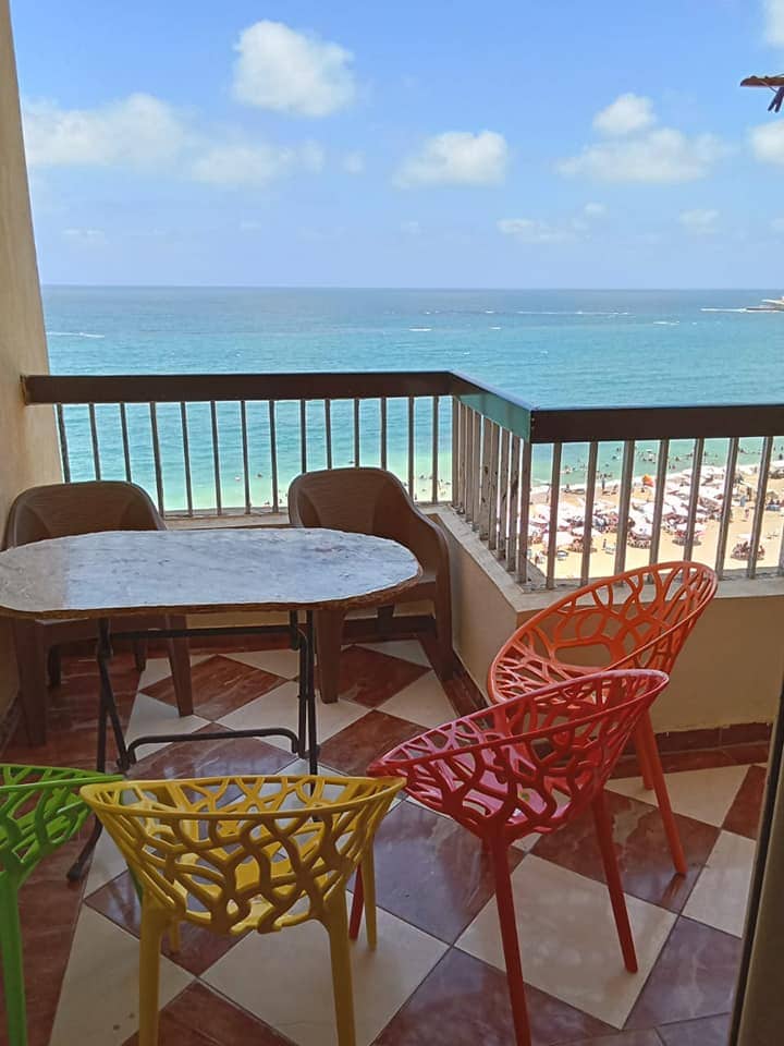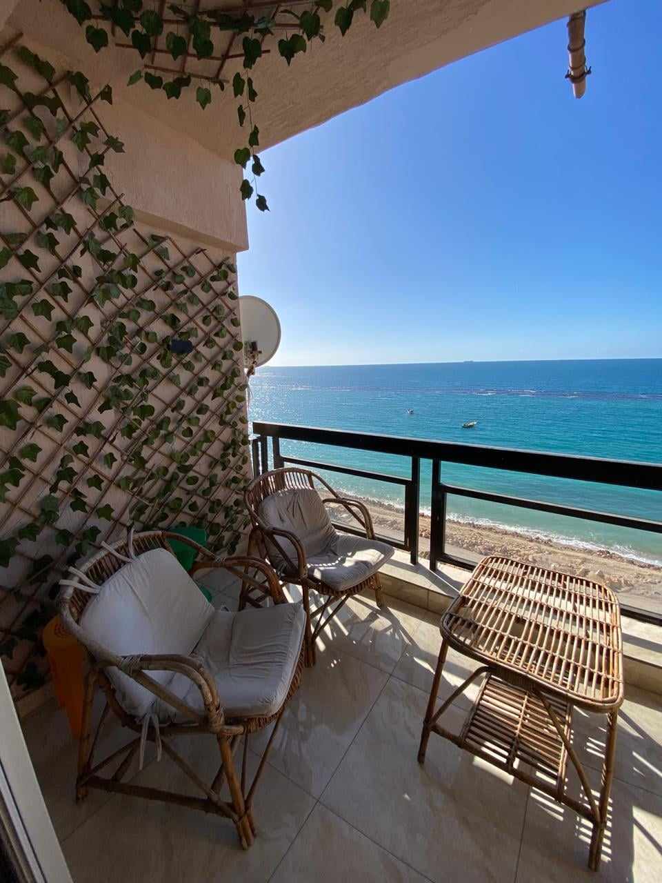 A distinguished apartment on the beach of Alexandria in the Montazah area. It consists of three bedrooms with 6 beds, two bathrooms, a large hall containing a dining room, a salon, and a living room. In addition to a sea view across the width of the hall. And a large balcony containing a sofa and chairs made of wicker and classic beads. The apartment is located on the ninth floor, giving it a unique view of the beach that you will never see before.