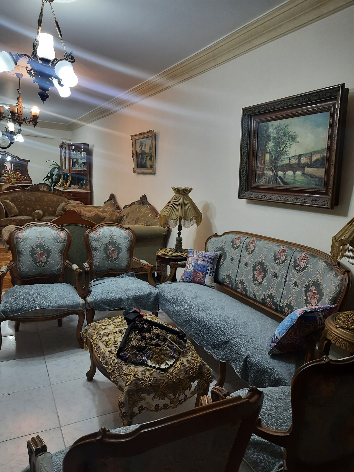 A distinguished apartment on the beach of Alexandria in the Montazah area. It consists of three bedrooms with 6 beds, two bathrooms, a large hall containing a dining room, a salon, and a living room. In addition to a sea view across the width of the hall. And a large balcony containing a sofa and chairs made of wicker and classic beads. The apartment is located on the ninth floor, giving it a unique view of the beach that you will never see before.
