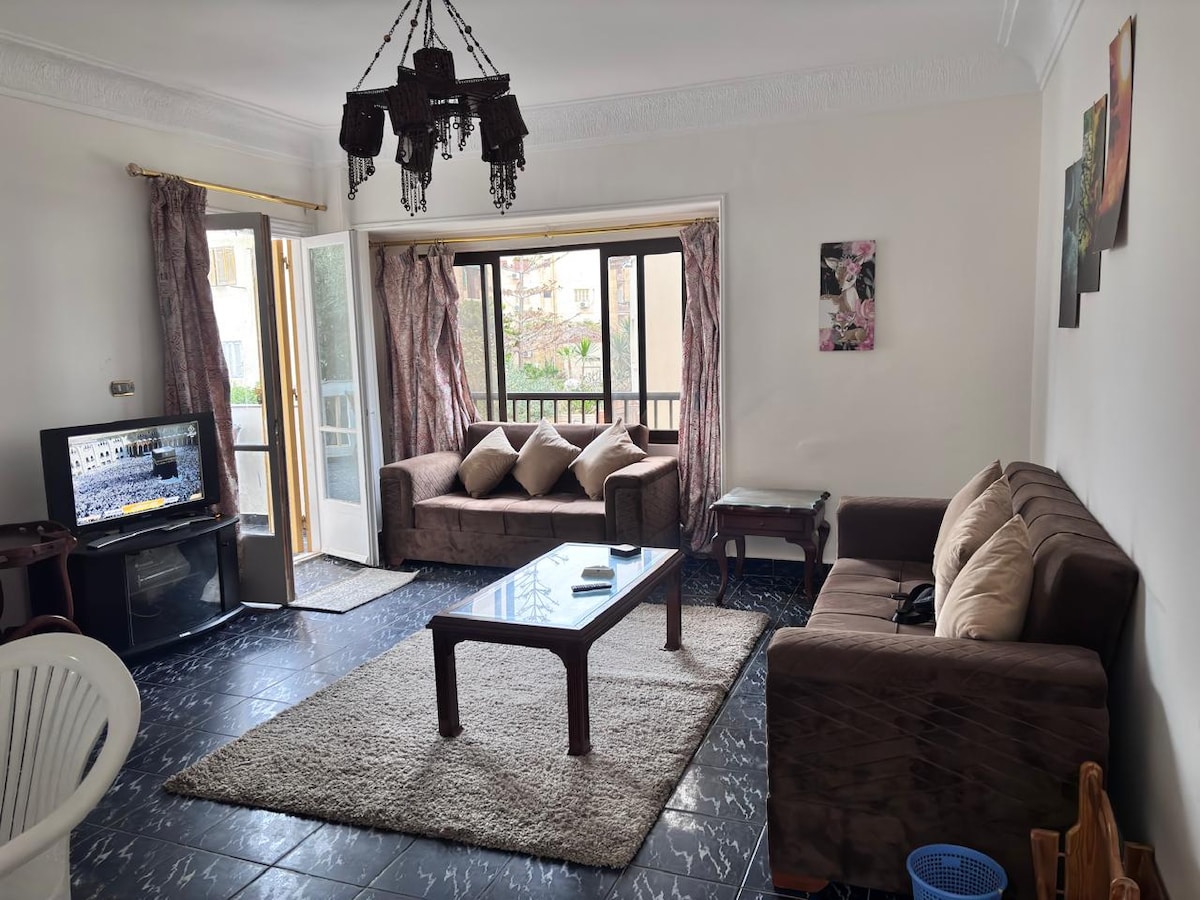 Spacious 3BR apt, 2BR apartment with a spectacular sea view. Apt have brand new furniture and equipments haven’t been used yet. 24/7 security guard and and elegant building entrance with two elevators. It’s right on a main St, 20 secs walking to Cornish (El-giesh Rd) Everything is walking distance from mini mall, 9 restaurants, 3 bakery, 8 cafe and many more. There is only two bedrooms are furnished and the third one only have 2 chairs. Apt have a super comfy couches and Farley modern.