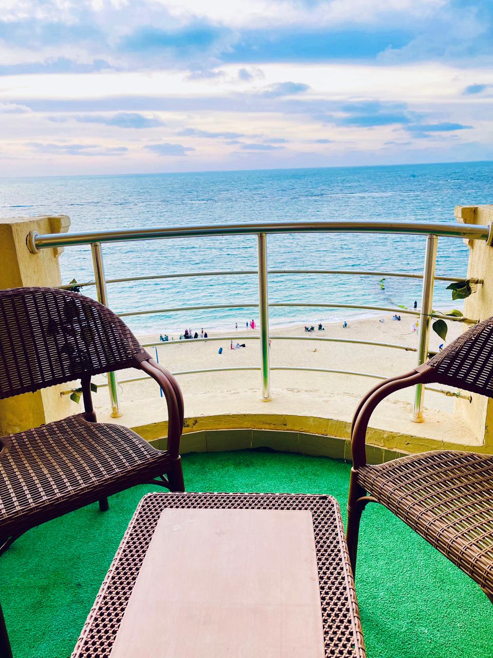 Stunning beachfront apartment with panoramic sea views in the heart of Alexandria, on the 15th floor. Bright, spacious setting with modern amenities and a private balcony and beach access. The building offers 24/7 security and assigned parking. Steps from the beach and close to restaurants, cafés, and shops. Sleeps 6: • 3 bedrooms (2 king, 2 singles) • 2 bathrooms with showers • Large lounge, fully equipped kitchen • Fast WiFi, satellite TV, fresh linens •Fully air-conditioned •Elevator access