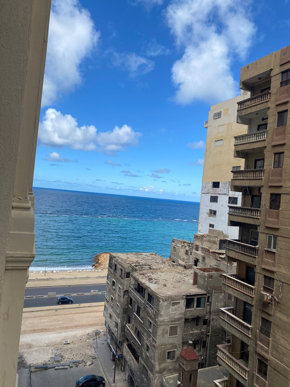 In the heart of Alexandria and in front of one of the most charming shores in the world, high in the sky on 5th floor is the apartment. From that height you can see the King's palace, the beaches and those tiny cars flowing on the road. Inside a modern and cozy flat with all necessary and unnecessary facilities, tidy and clean waiting for your arrival. Hope you experience a remarkable and unforgettable vacation ❤