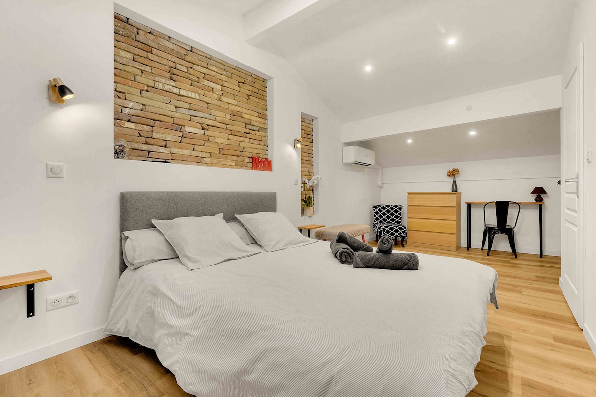 Dépendance de 30 m² avec plafond cathédrale, située au fond d’une impasse calme, avec salon de jardin et barbecue. Recharge véhicule électrique possible. À 12 min de l’A68 et 16 min de l’A62. Forêt à 5 min à pied avec parcours sportif et aire de jeux. Centre du village et bus pour Toulouse à 5 min. Wifi 50 Mb/s. Idéale pour un séjour paisible proche de la nature ! Prix inclus : ménage, wifi/fibre, linge (draps, serviettes, torchons).