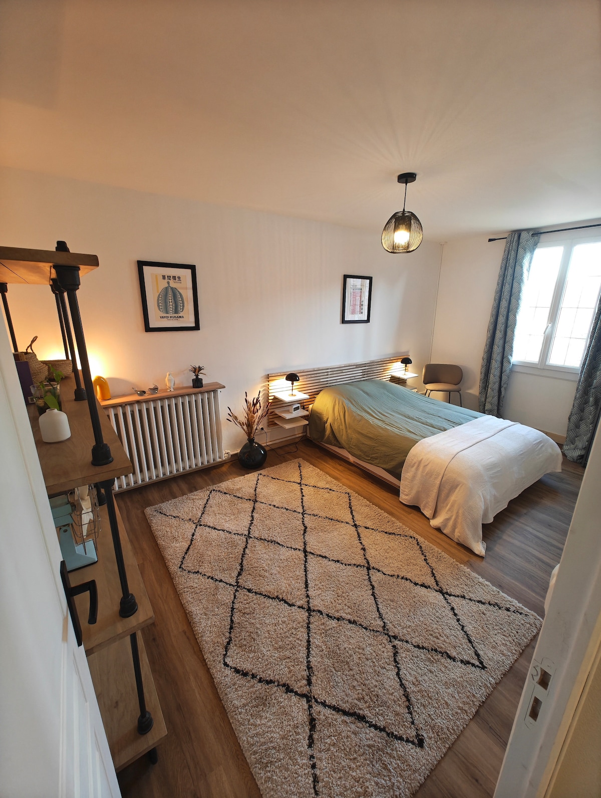 Appartement de 75 m2 situé au 1er étage avec un grand balcon donnant sur une arrière cour très agréable, deux grandes chambres de 13 m² chacune, intégrant un espace de travail. NON FUMEUR Linge de lit et serviettes de toilette fournis Idéalement situé en cœur de ville au calme, proche de toutes commodités (supérette, boulangeries, bars, restaurants...) à 200m de la gare
