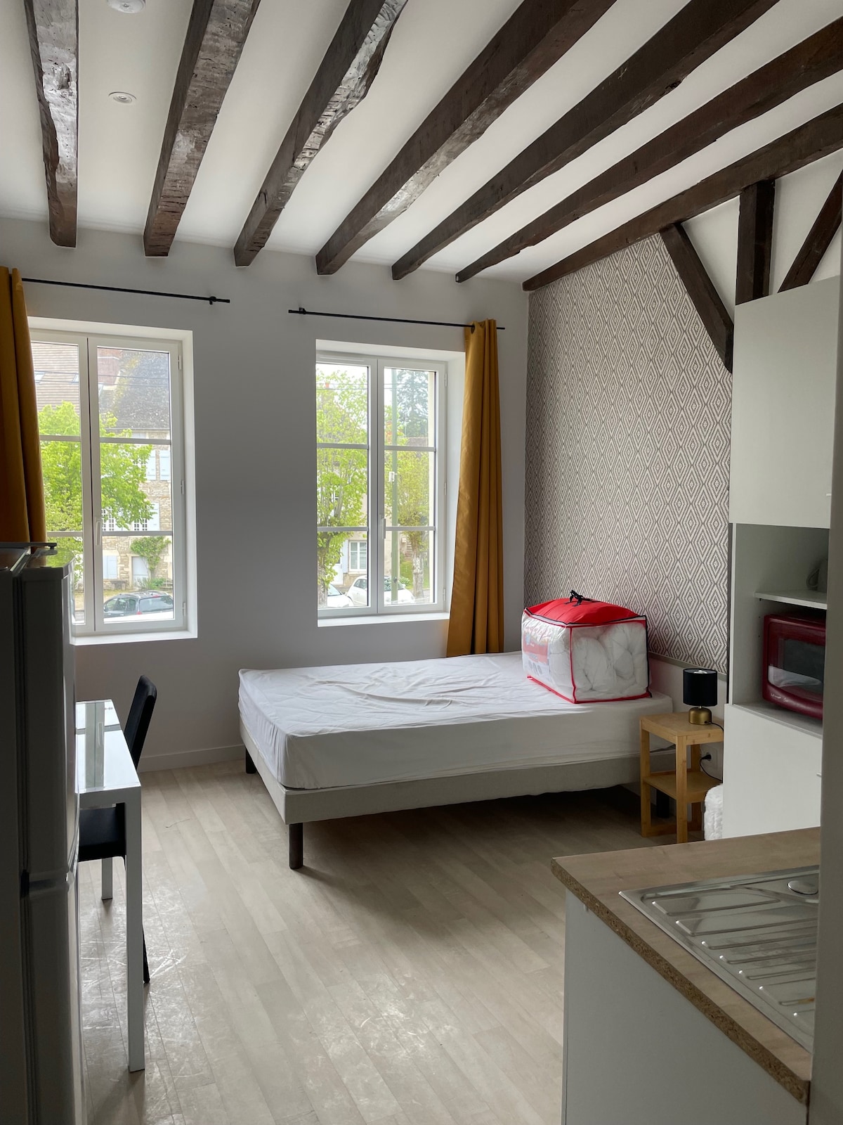 Profitez d'un logement de 40 m2 élégant et central. Il dispose d’une chambre spacieuse et d’un salon pourvu d’un lit d’appoint pour deux personnes supplémentaires, idéalement des enfants . Petite cuisine entièrement équipée. Espace dînatoire. Salle d’eau avec douche et machine à laver. Terrasse extérieure aménagée. Appartement très fonctionnel de plain-pied dans une cour privée arborée en plein centre-ville d’Autun, commerces et monuments historiques à proximité. Quartier sûr et agréable.