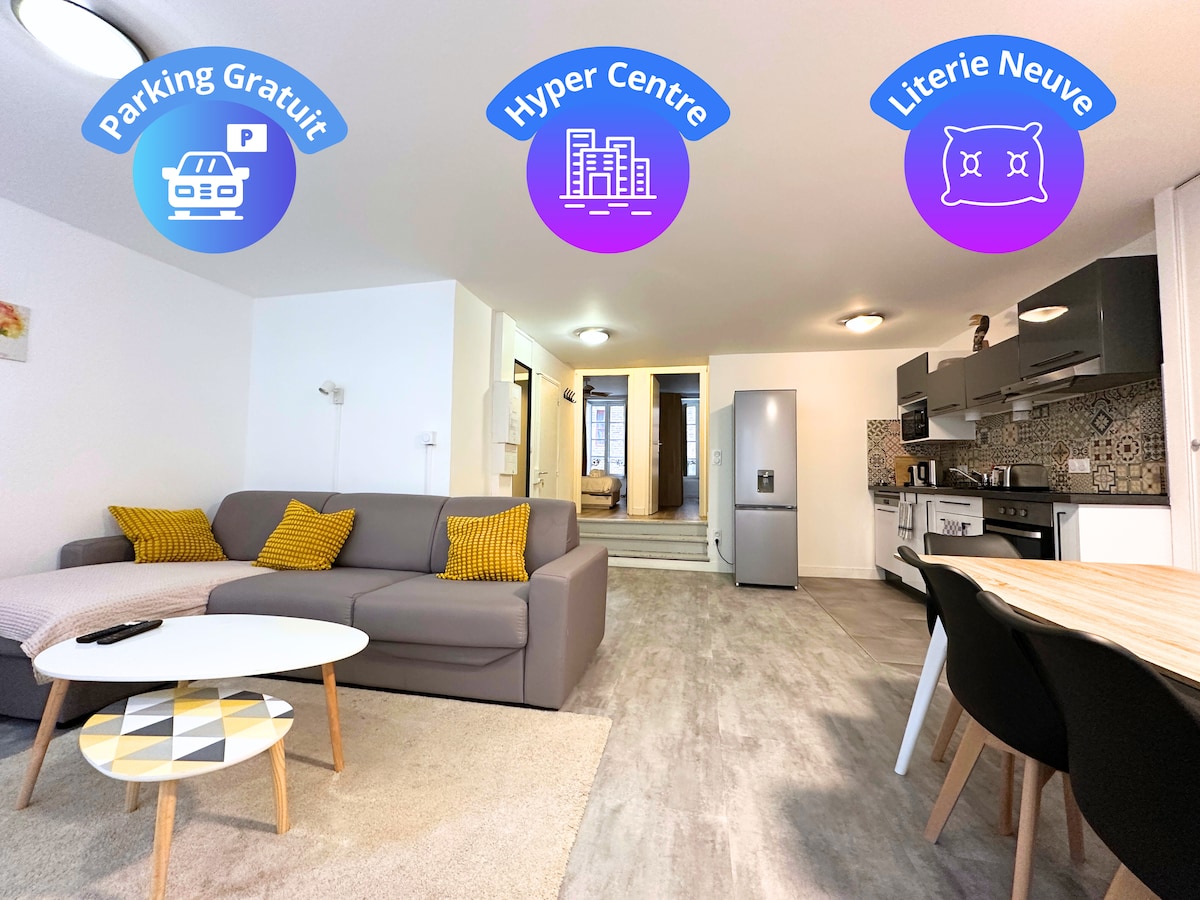**** MAISON ORSCHA - LA RÉSIDENCE *** Ultra fonctionnel & calme, cet appartement est l’endroit idéal comme point de base pour découvrir Cahors et sa région ou 1 semaine de télétravail entre amis. Situé à 5' à pied du centre historique et à 3' du Pont Valentré - que l’on aperçoit même depuis le salon - l’emplacement permet aux + sportifs d’improviser au réveil un footing le long du Lot ou de profiter du merveilleux marché sur la place de la Cathédrale.