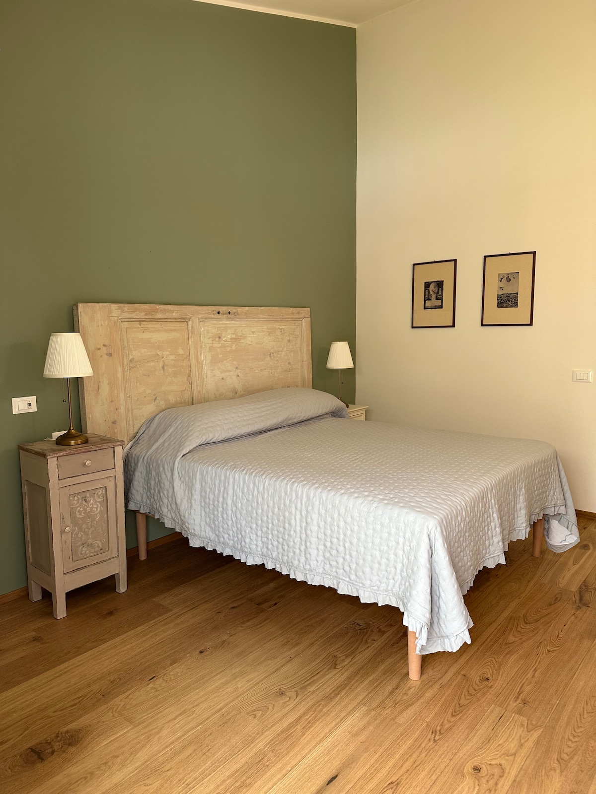 Luminosa camera con letto matrimoniale e bagno privato con doccia. La camera dispone di wifi, tv, lenzuola e set di biancheria per il bagno.